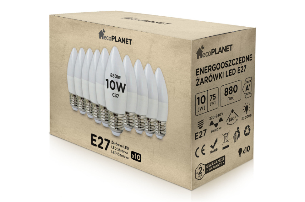 - Model: E27 10W świeczka C37 ecoPLANET