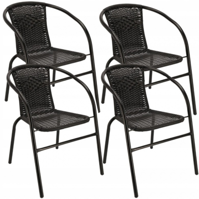 Potahy židlí jsou vyrobeny z technoratanu - ideálního pro použití v zahradách - odolného vůči povětrnostním podmínkám.Jejich provedení určitě umožní dlouholeté používání a jejich konstrukce je svařovaná, nerozebíratelná, lakovaná práškovou barvou. Nabídka obsahuje 4 kusy.