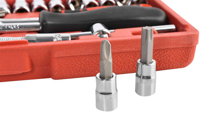 Sada skládající se z 46 prvků je zabaleno v praktickém kufříku. Nářadí najde uplatnění při mnoha opravárenských pracích v dílnách nebo doma, umožní utahování mnoha typů šroubů, umožní i výměnu zapalovacích svíček.
