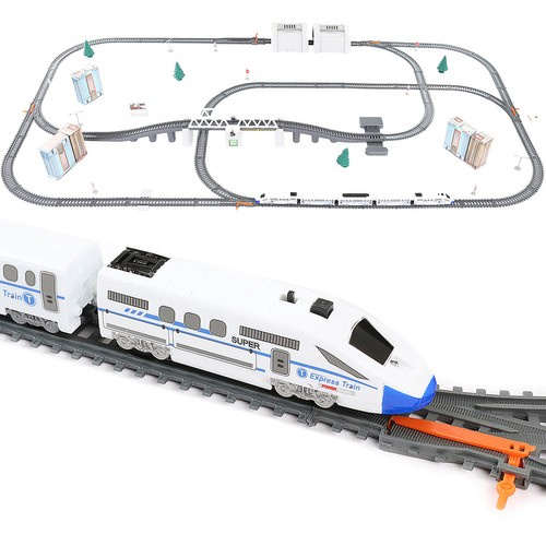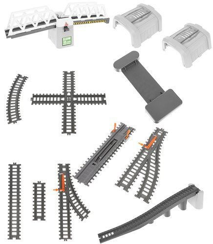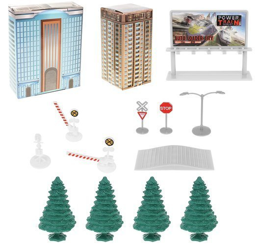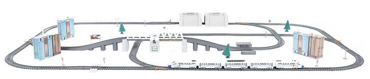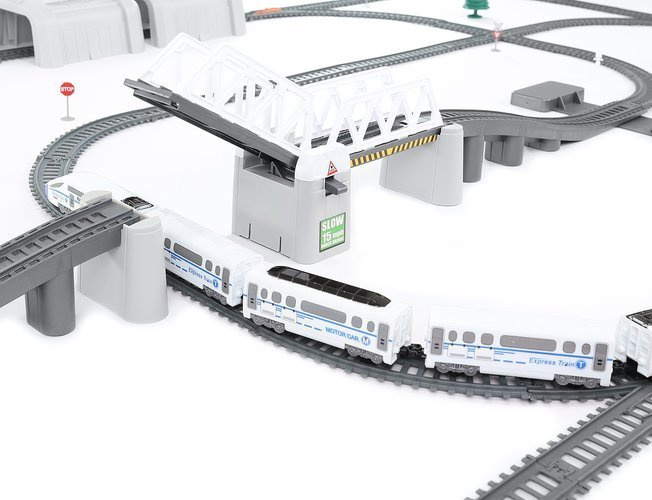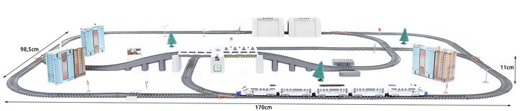 ELEKTRICKÁ DRÁHA86PRVKŮ- sada se skládá z 86 precizně vyrobených a pěkně zpracovaných prvků lze uspořádat dle vlastní představy . Sada obsahuje mj trať, vlak, vagóny, most se zdviženým ramenem, sada stromů a značek . Prvky železnice a vlaku jsou spojeny pomocí speciálních háků, které jsou umístěny na konci lokomotivy a každého vozu. Dráhy mají speciální páky. Díky nim může dítě kdykoliv změnit trasu stroje .
