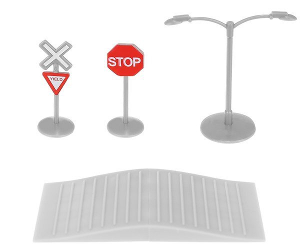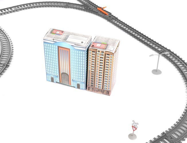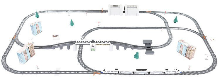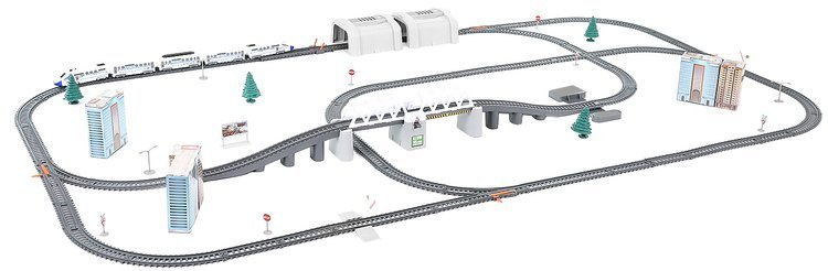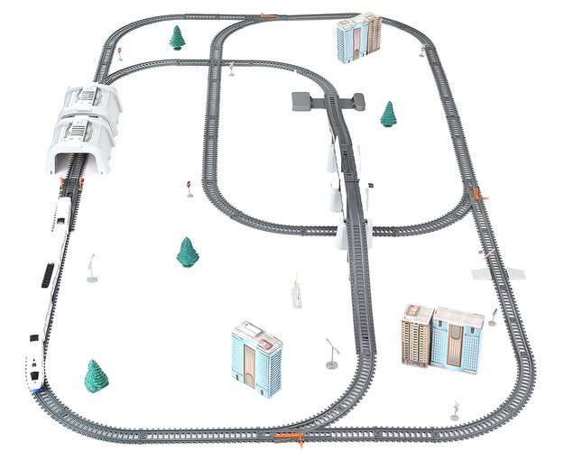 9 METRŮ ZÁBAVY - celková délka dráhy je 9m! To umožňuje libovolné konfigurace uspořádání a umožňuje dítěti postavit pokaždé jinou dráhu, aby se hra nestala monotónní. Kusy dráhy lze snadno a rychle vzájemně spojovat a díky kolíkům zůstává konstrukce při hře stabilní . Sada navíc obsahuje doplňky, jako jsou auta, stromy a značky, díky kterým bude zábava realističtější a dítě si bude moci navrhovat krajinu kolem tratí. Navíc lze tuto skladbu kombinovat s jinou skladbou stejné série. Mají stejné háky na vozidlech a spojují jednotlivé kusy kolejí.