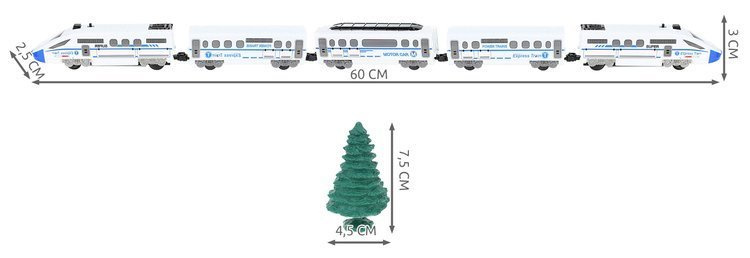 rozměry lokomotivy s vagóny (délka / šířka / výška): 60 / 2,5 / 3 cm