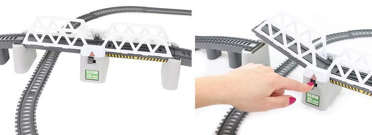 IMITACE SKUTEČNÉHO ZAMETÁNÍ - vlak byl navržen tak, aby do nejmenších detailů reprodukoval skutečný stroj. Po zapnutí se fronta pohybuje po samotné trati a táhne připojené vagóny . Součástí sady je i most s tunelem, který může vaše dítě ovládat tlačítkem. Otevřením nebo uzavřením průchodu pro vlak.