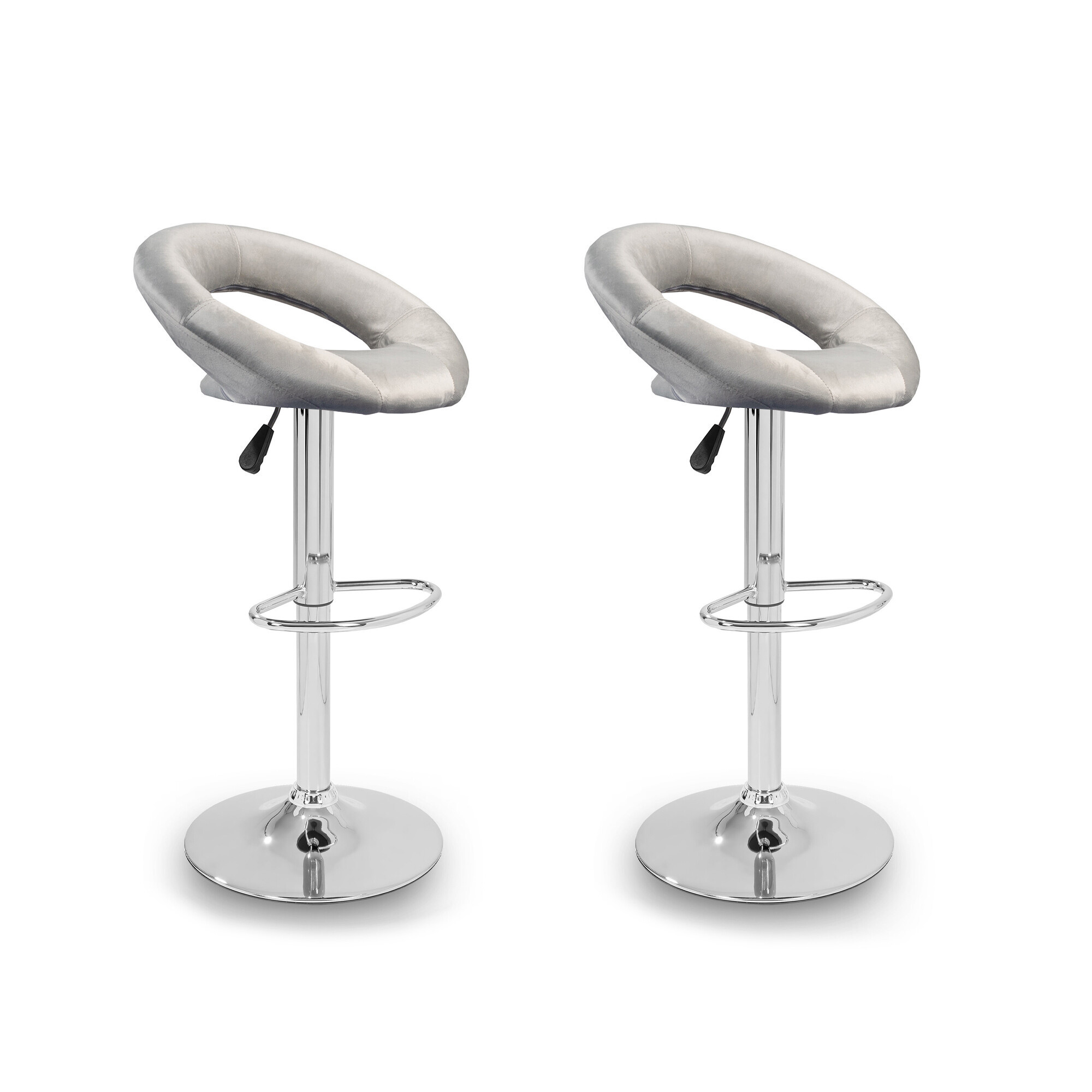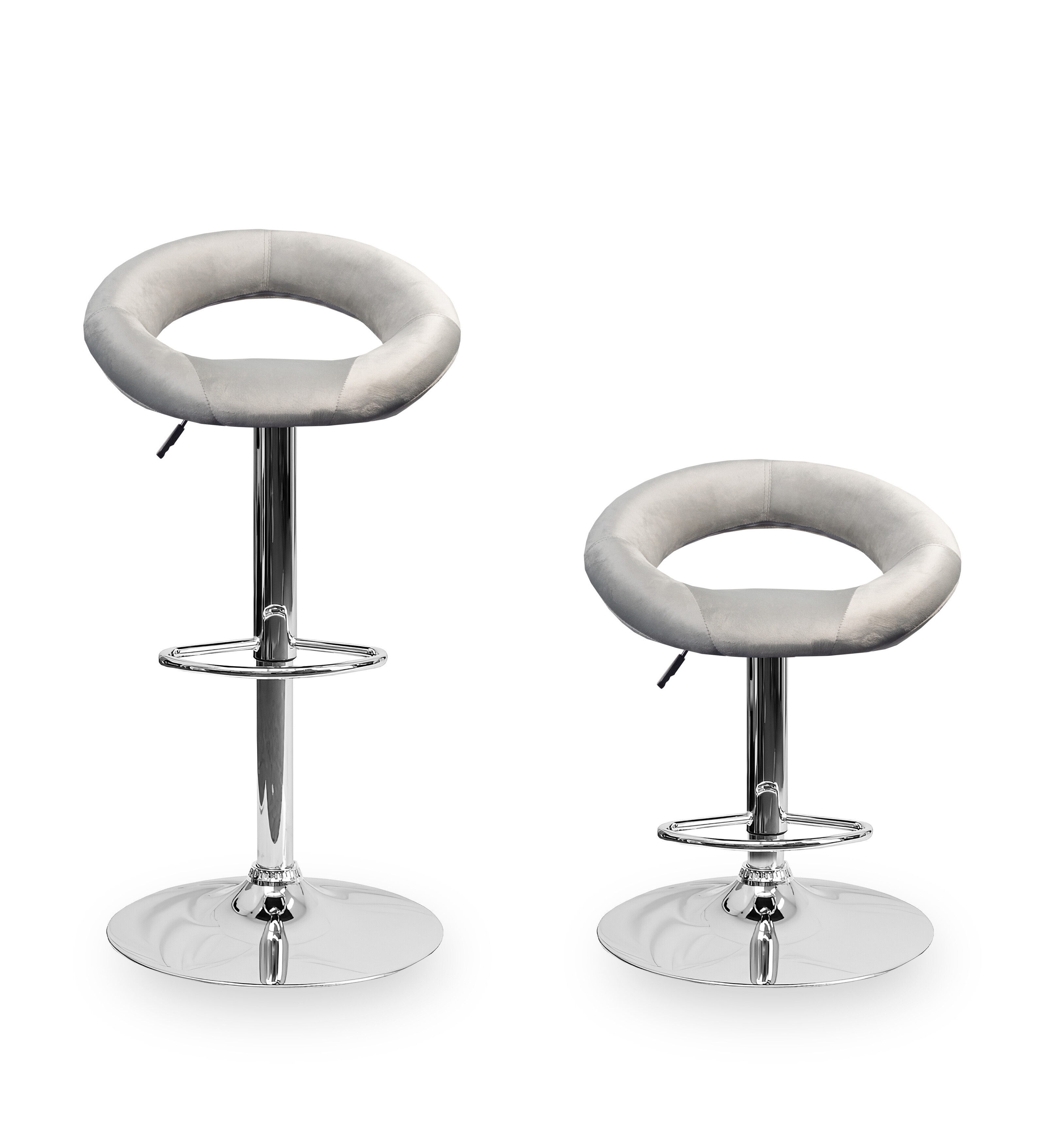 Židle vyniká kruhovými tvary, kruhový sedák spojený s kruhovým opěrákem. Povrch sedací části barové židle je ze sametu.