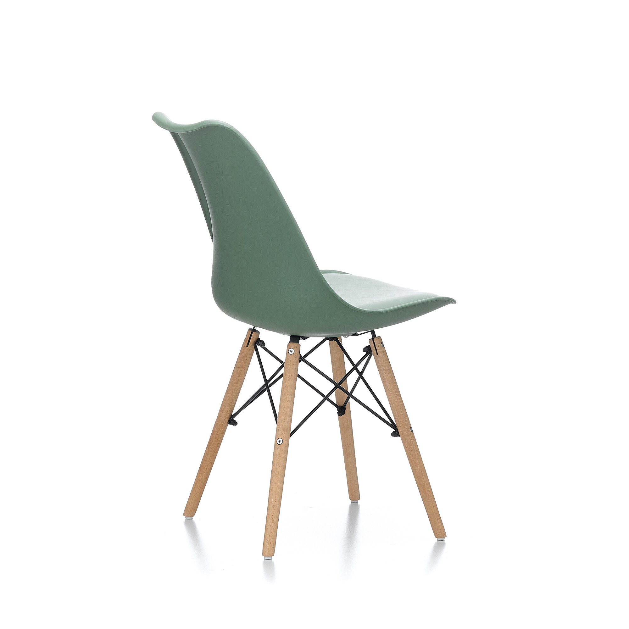 Židle je vyrobena z kvalitního a odolného polypropylenu s polštářem v potahu umělé kůže v kombinaci podnože z bukového dřeva.
