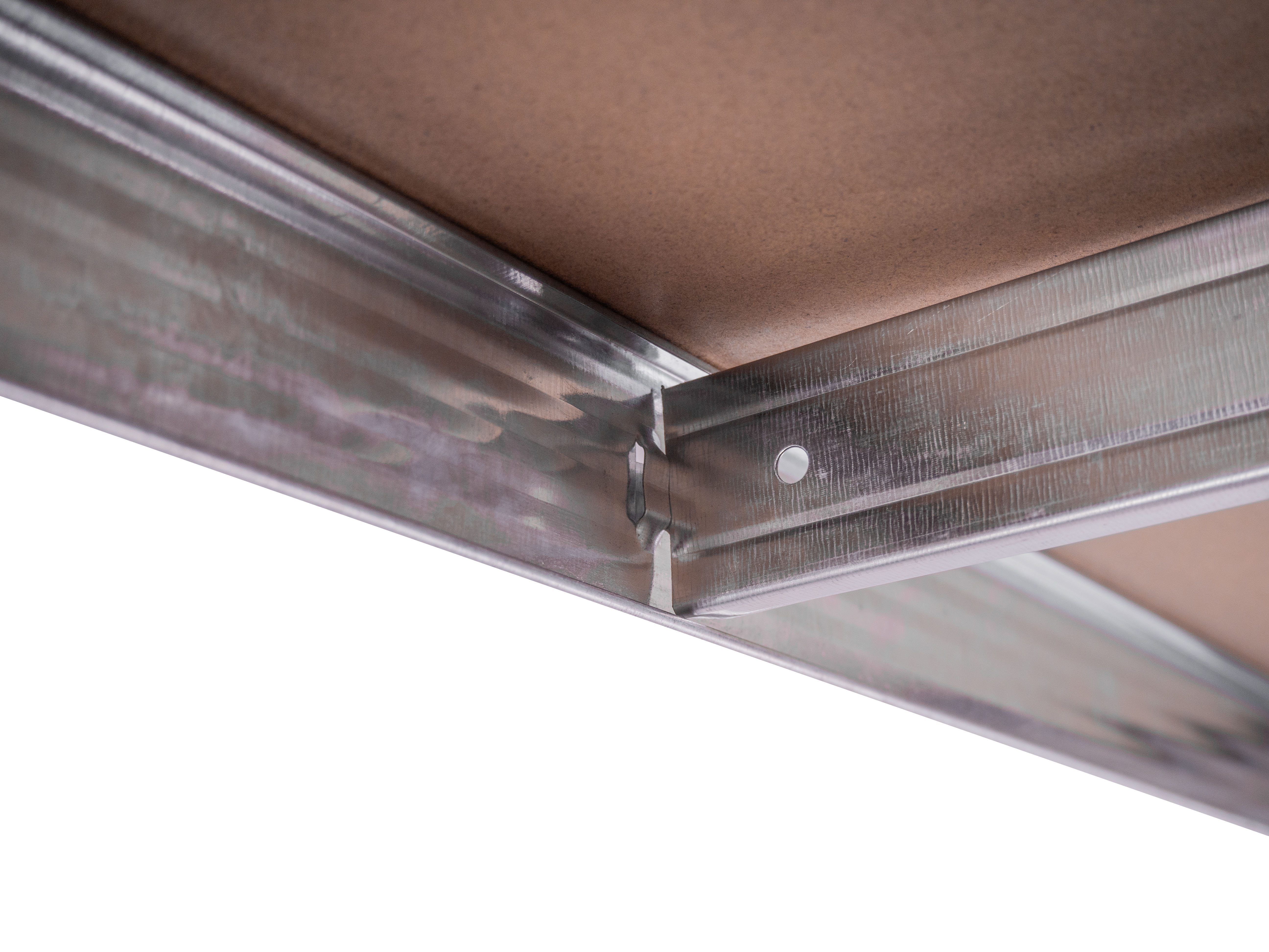 Na výšce cca 174 cm máte k dispozici 5 polic z mdf, které lze výškově vložit dle potřeby. Rám z galvanizované oceli ve stříbrné barvě zaručuje stabilitu a velkou nosnost cca 375 kg (na každou polici připadá cca 75 kg).