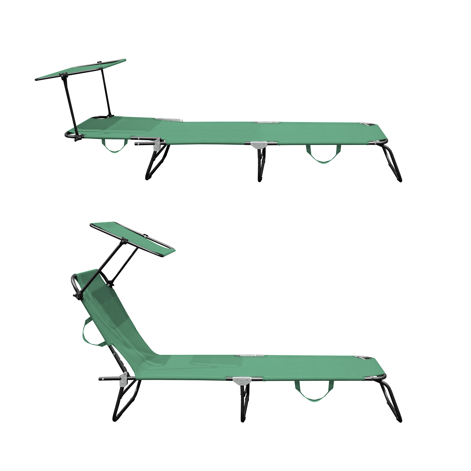 Aga 2x Zahradní polohovací lehátko se stříškou Světle zelené