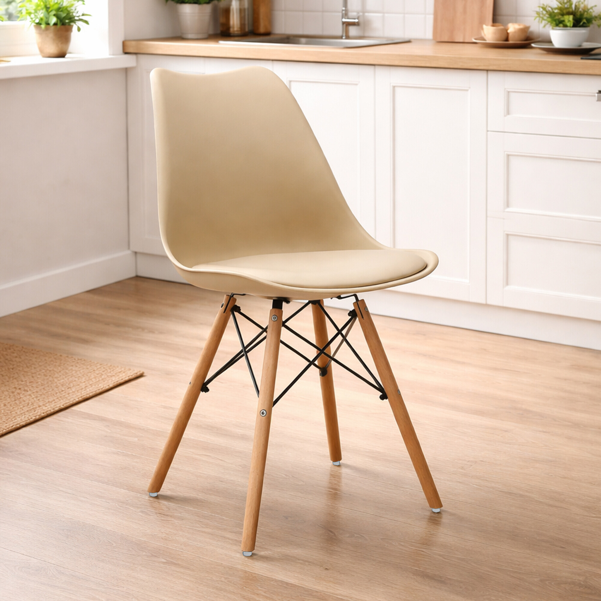 Židle je vyrobena z kvalitního a odolného polypropylenu s polštářem v potahu umělé kůže v kombinaci podnože z bukového dřeva.