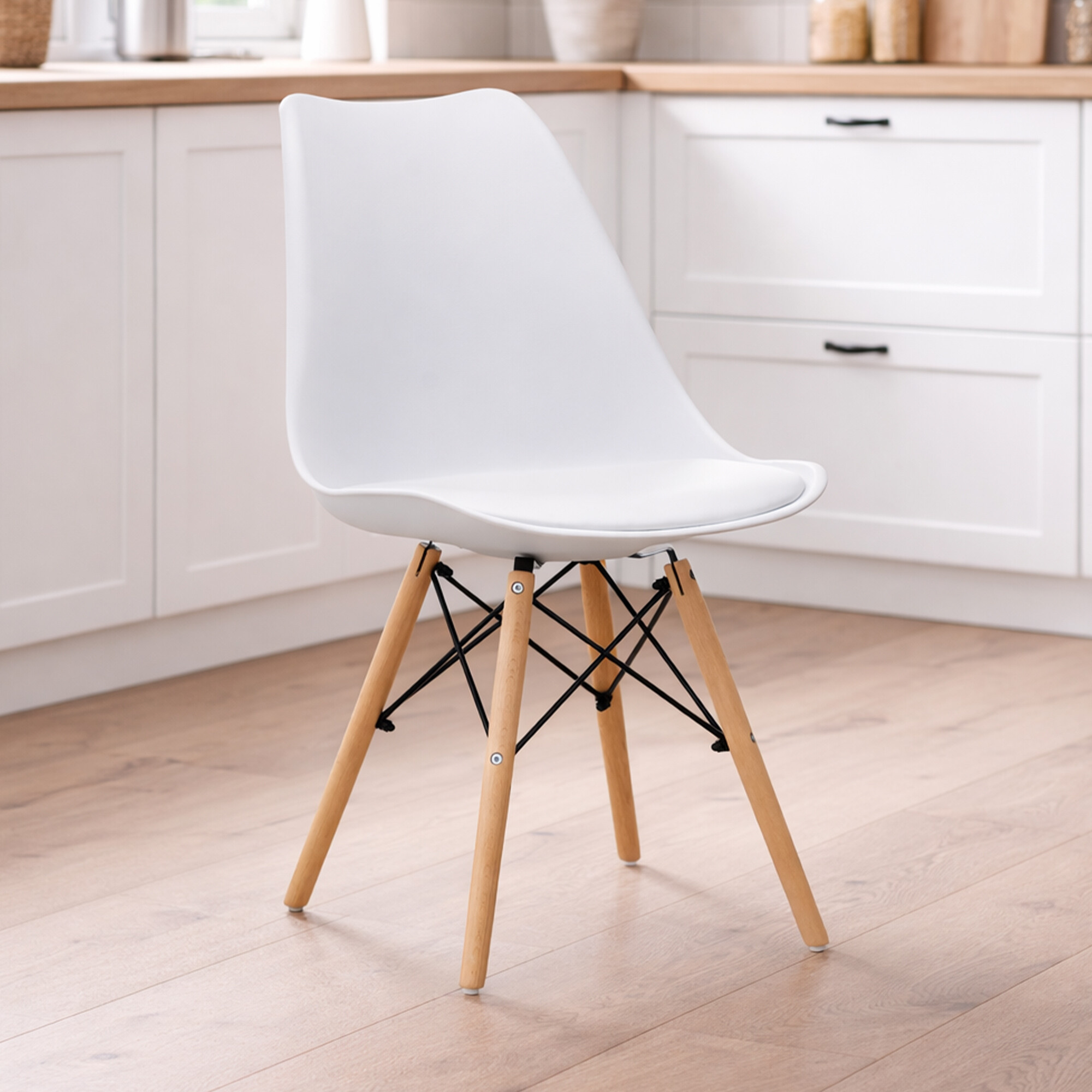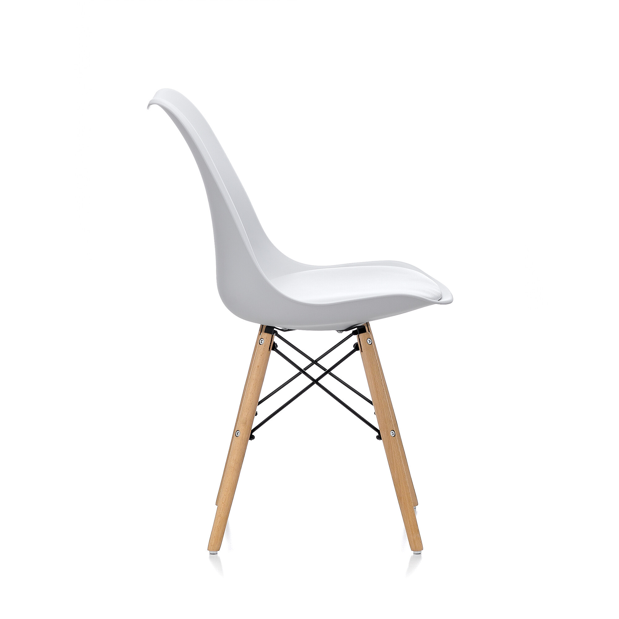 Židle je vyrobena z kvalitního a odolného polypropylenu s polštářem v potahu umělé kůže v kombinaci podnože z bukového dřeva.