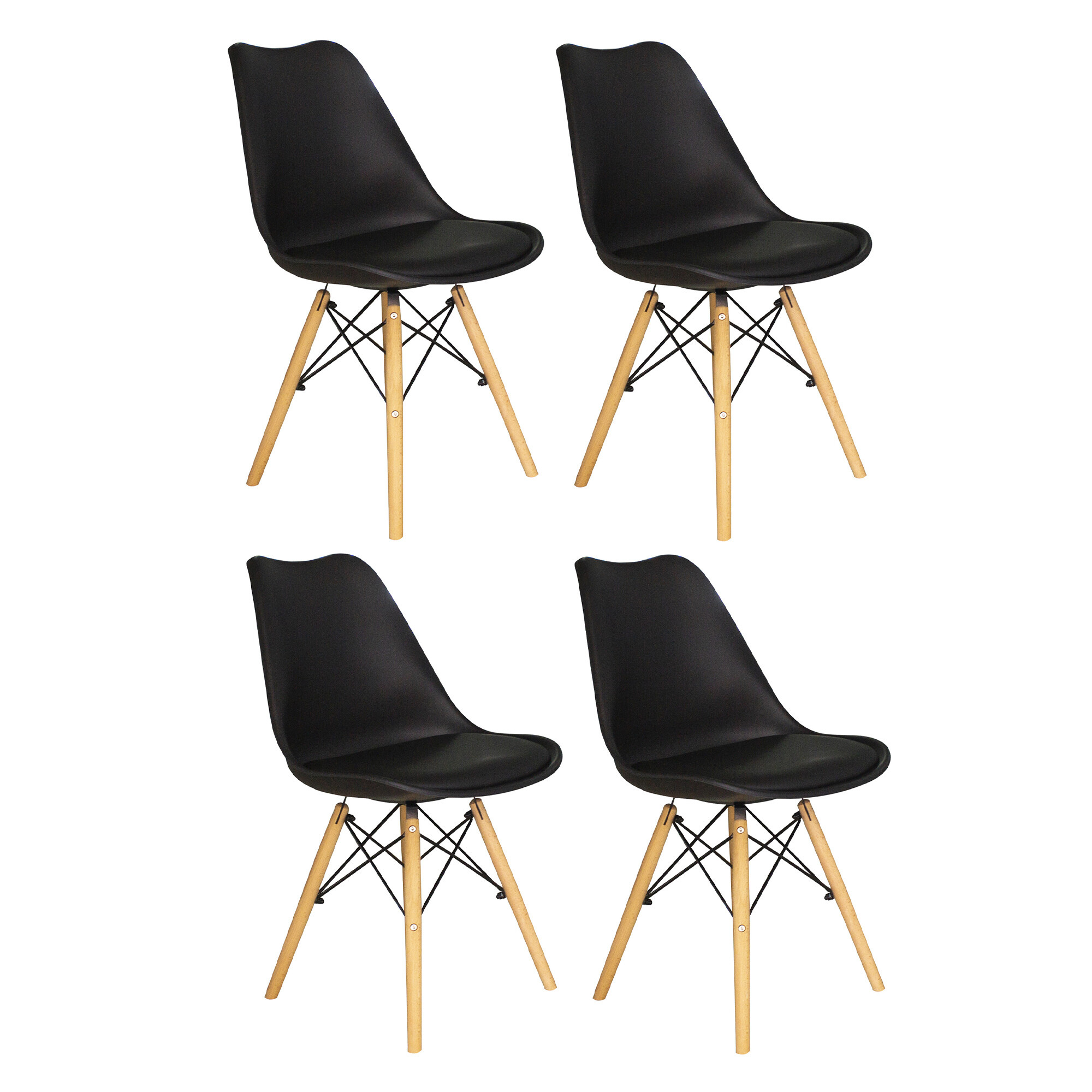 Židle je vyrobena z kvalitního a odolného polypropylenu s polštářem v potahu umělé kůže v kombinaci podnože z bukového dřeva.