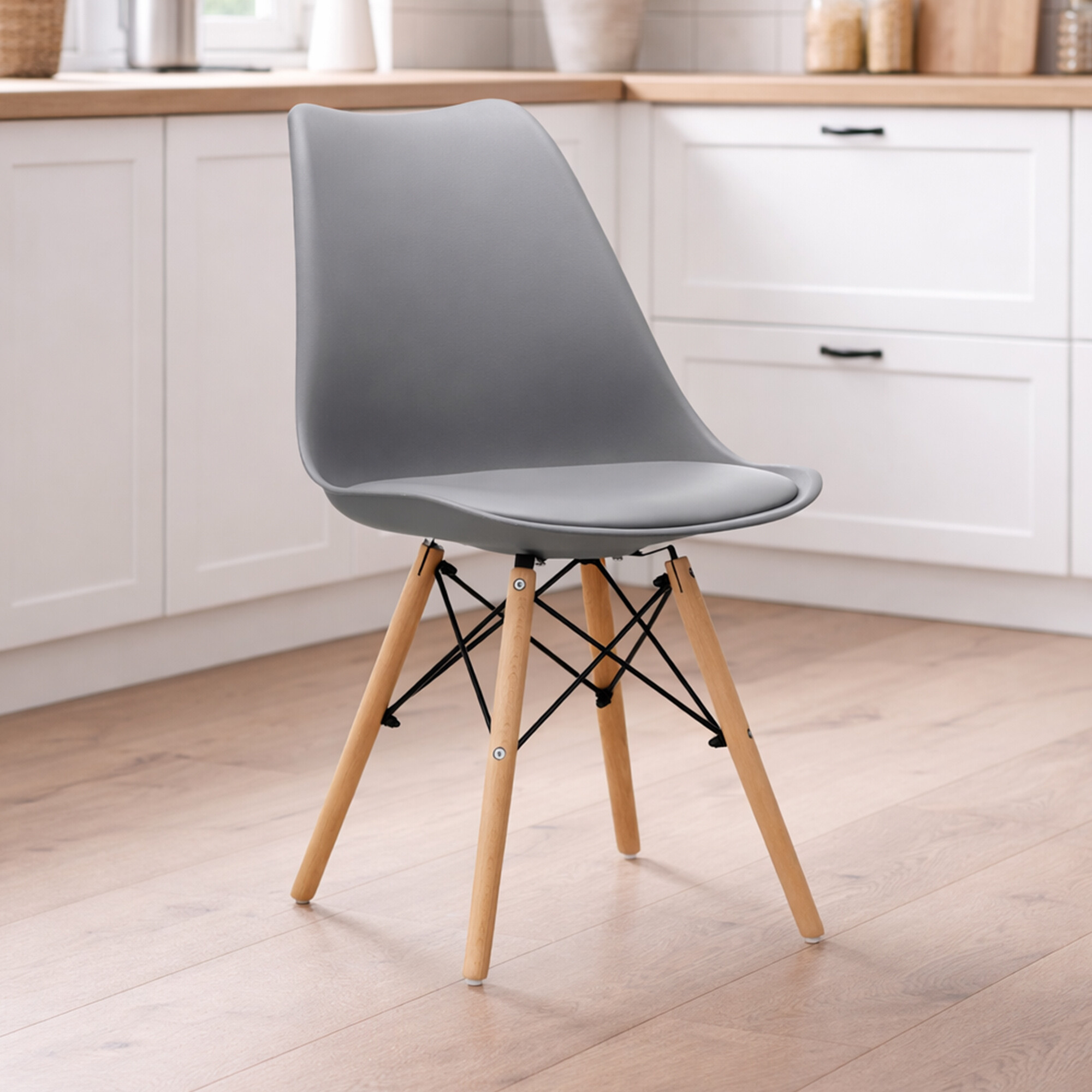 Židle je vyrobena z kvalitního a odolného polypropylenu s polštářem v potahu umělé kůže v kombinaci podnože z bukového dřeva.