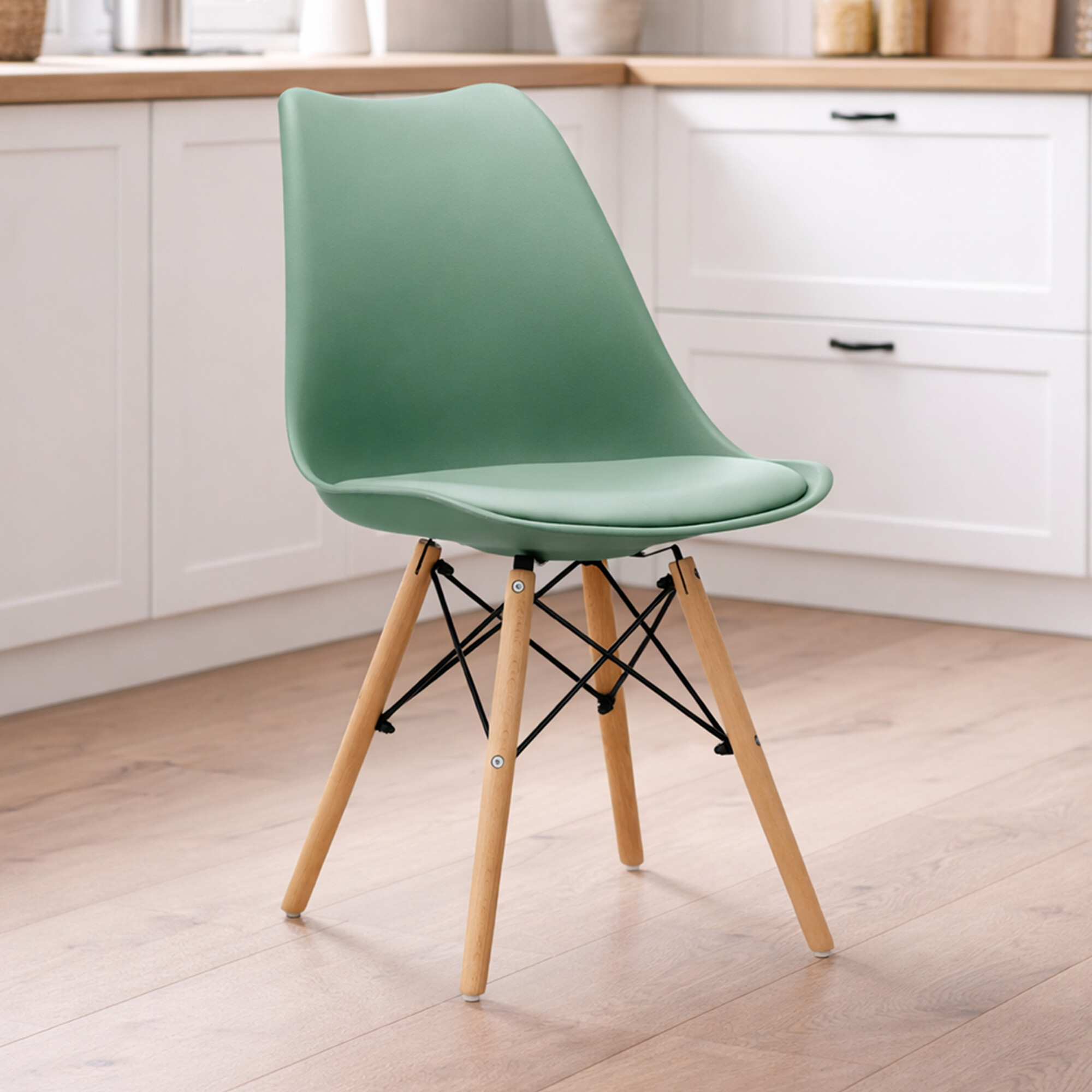 Židle je vyrobena z kvalitního a odolného polypropylenu s polštářem v potahu umělé kůže v kombinaci podnože z bukového dřeva.