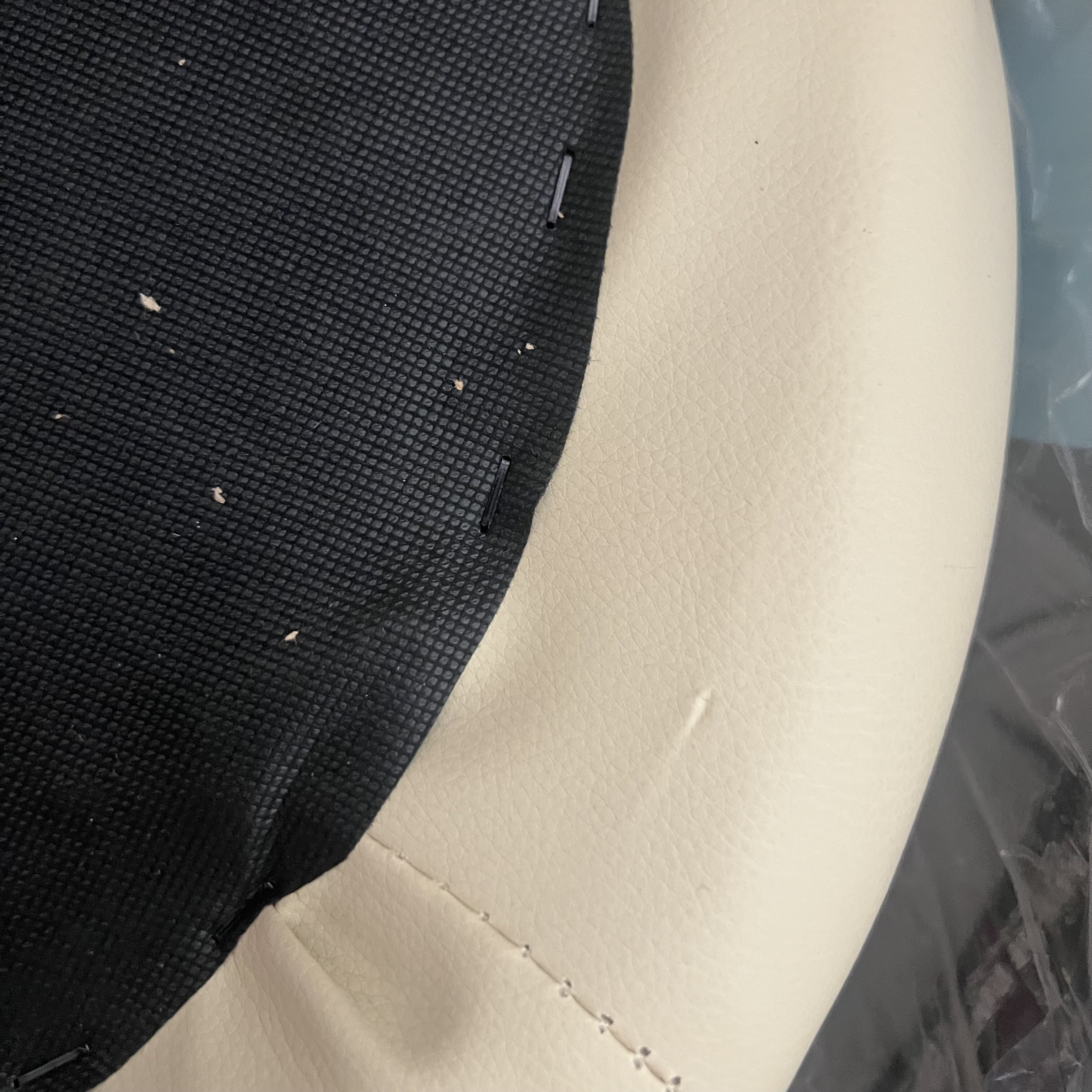 Barové židle mají poškození na sedáku a jsou mírně špinavé.