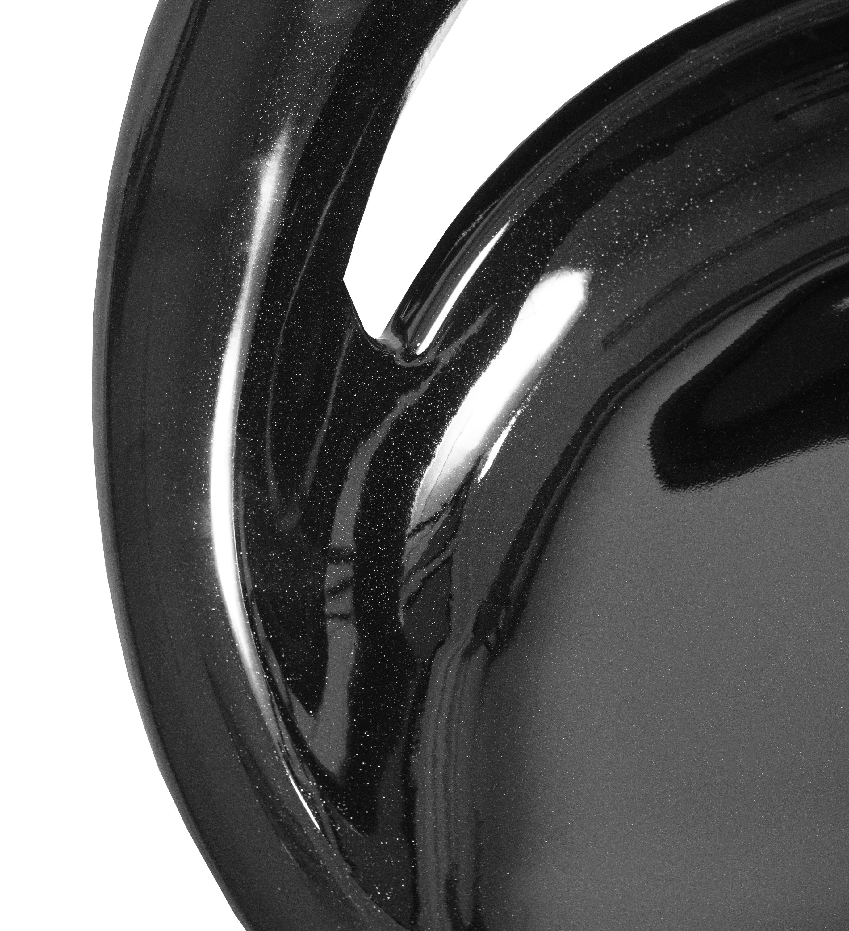 Elegantní chromování doplňuje její moderní vzhled. Židle vyniká kruhovými tvary, kruhový sedák spojený s kruhovým opěrákem.