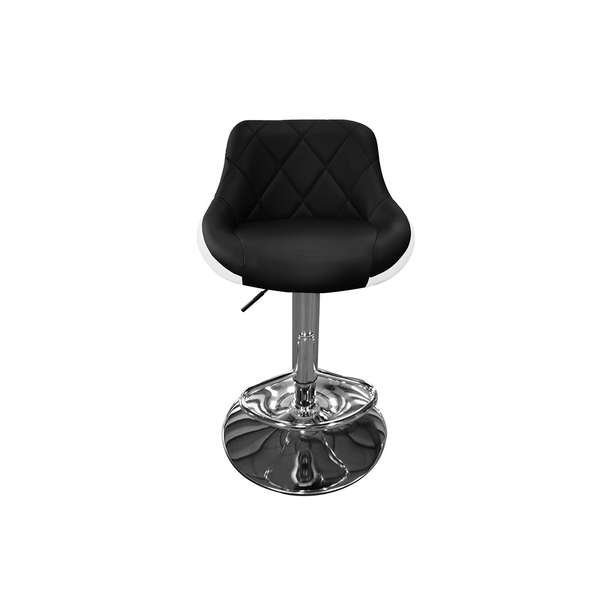 Židle má praktickou opěrku na nohy z pochromovaného kovu. Kruhová podnož a centrální noha jsou z chromu v lesku.