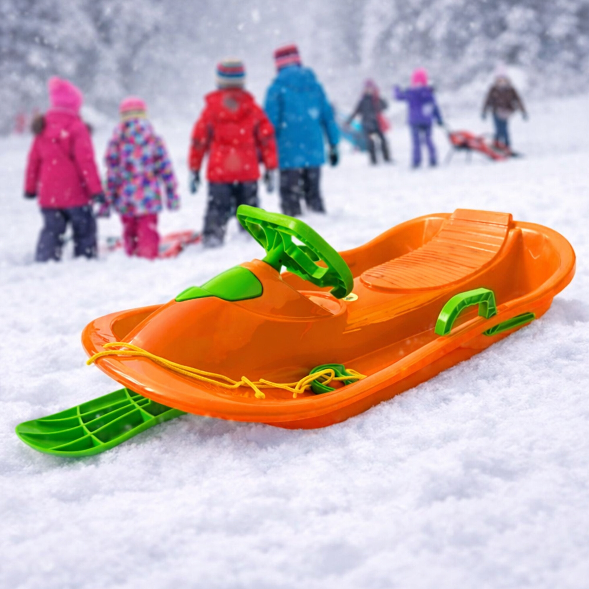 Brzdící páky vám dovolují lehké a rychlé zastavení bobů, takže se při potřebě okamžitého zastavení nemusíte tolik namáhat. Konstrukce bobů je vyrobena z pevného a odolného plastu, přičemž zaručují perfektní skluz na každém sněhu.