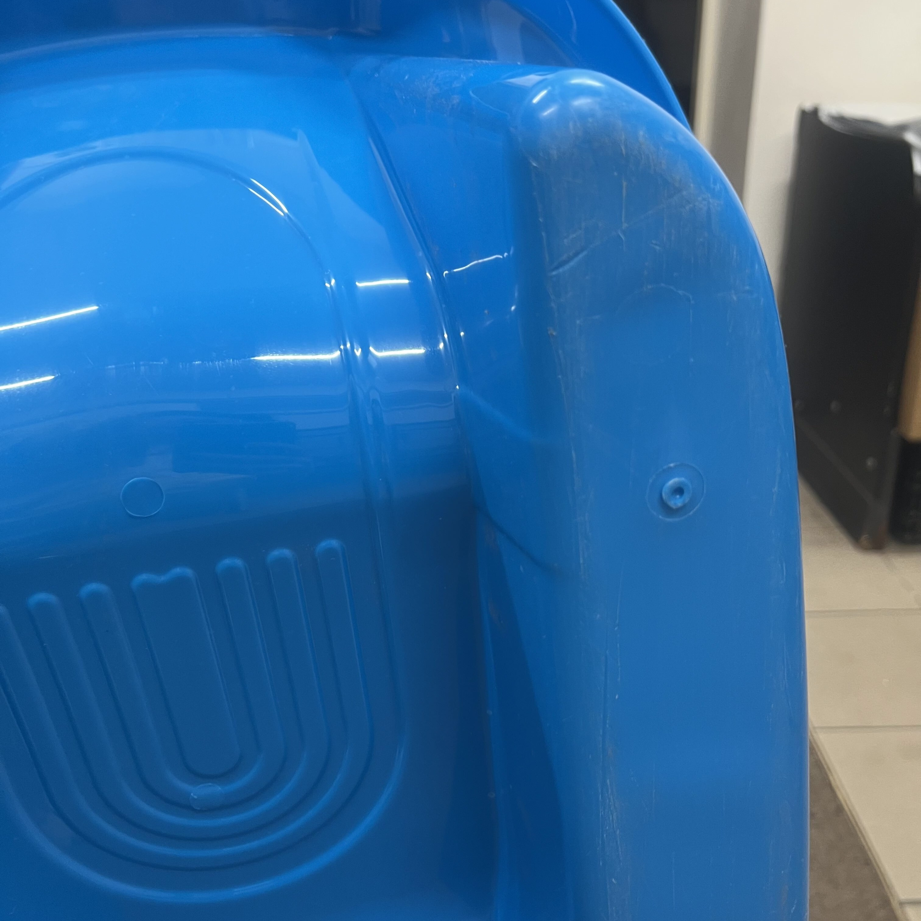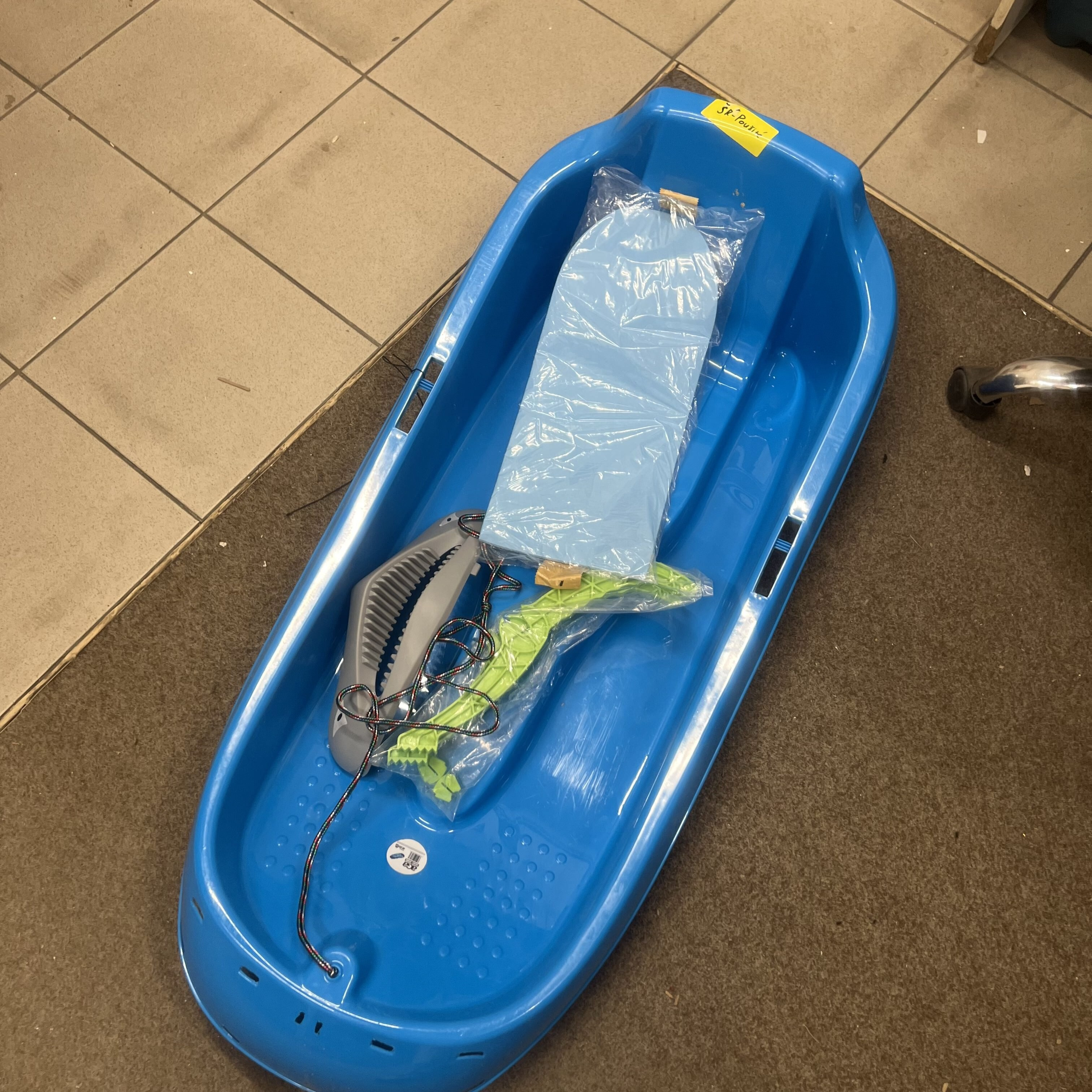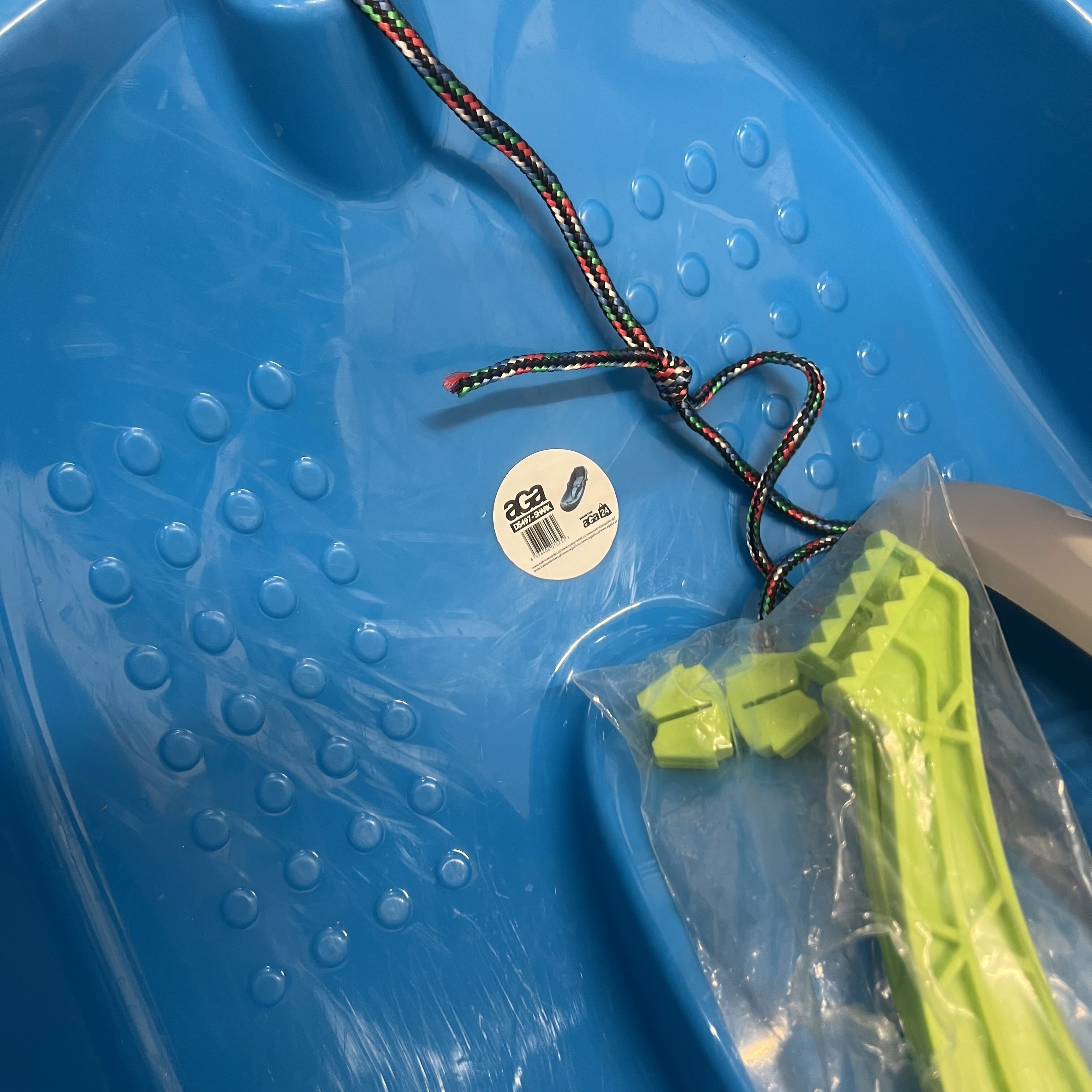 Sáně byly použity k natáčení reklamy, na spodní straně jsou viditelné stopy užívání.