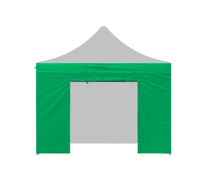 Přední samostatná stěna (bočnice) s uzavíratelným vstupem, připevňující se ke konstrukci stánku pomocí suchých zipů.