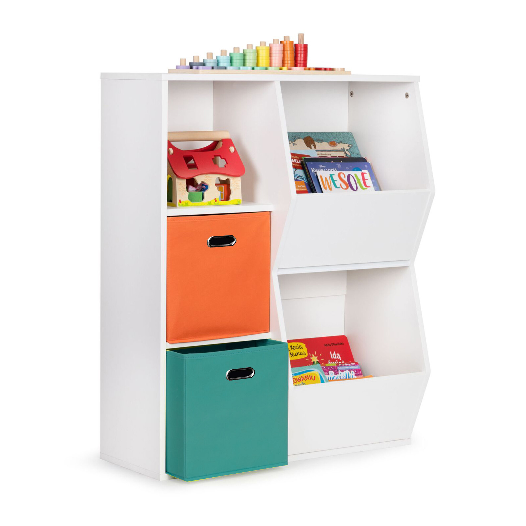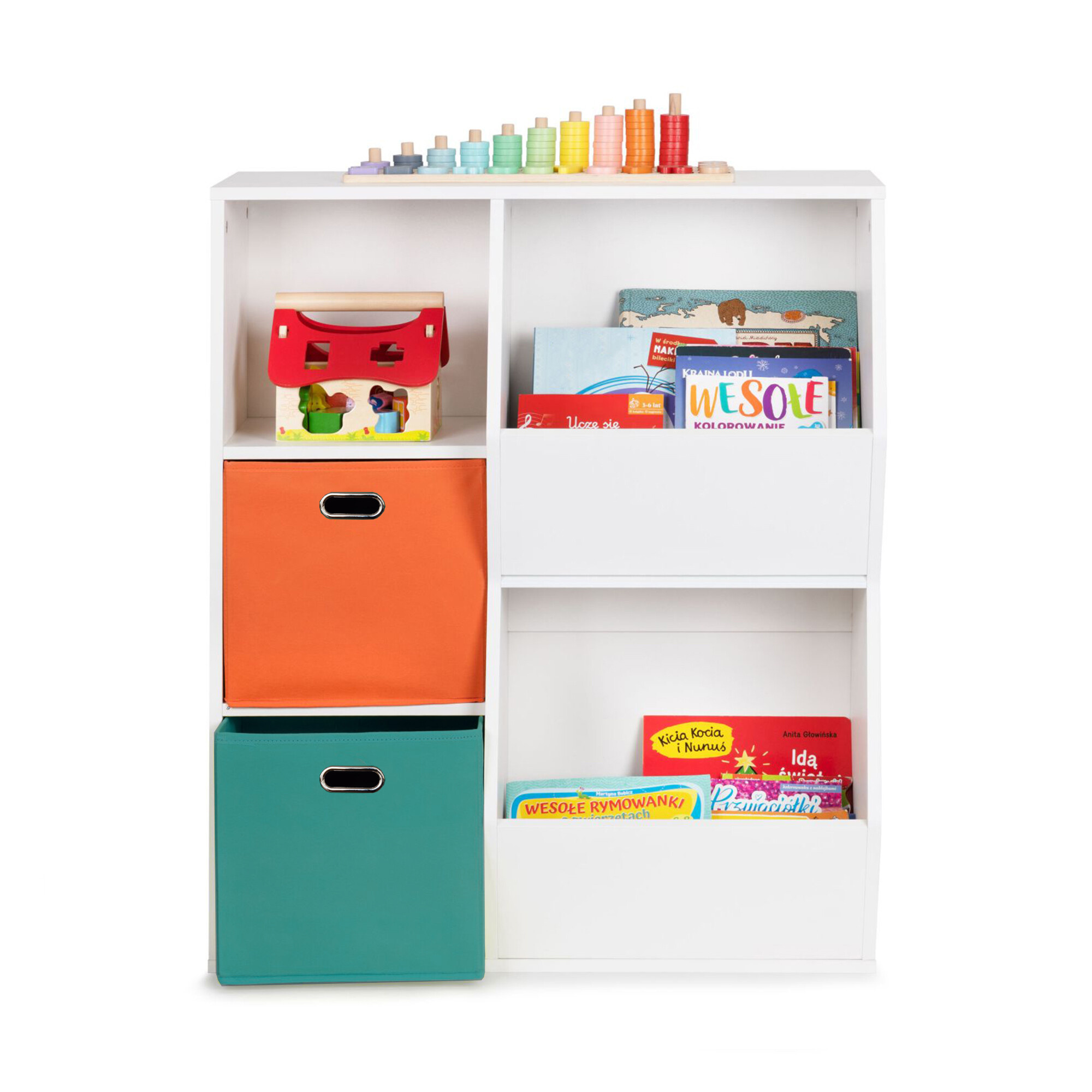 Tento praktický dětský regál s organizéry zajistí díky velkorysým odkládacím prostorům dostatek místa pro knížky, omalovánky, ale i oblíbené hračky.