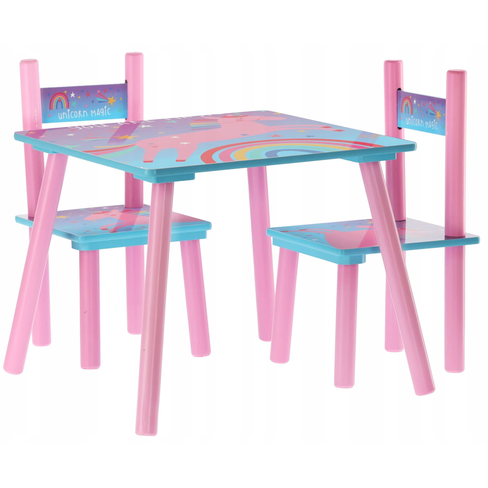 Součástí balení jsou také 2 židle. Dětský stolek se židlemi je vyroben z MDF materiálu a borovicového dřeva.