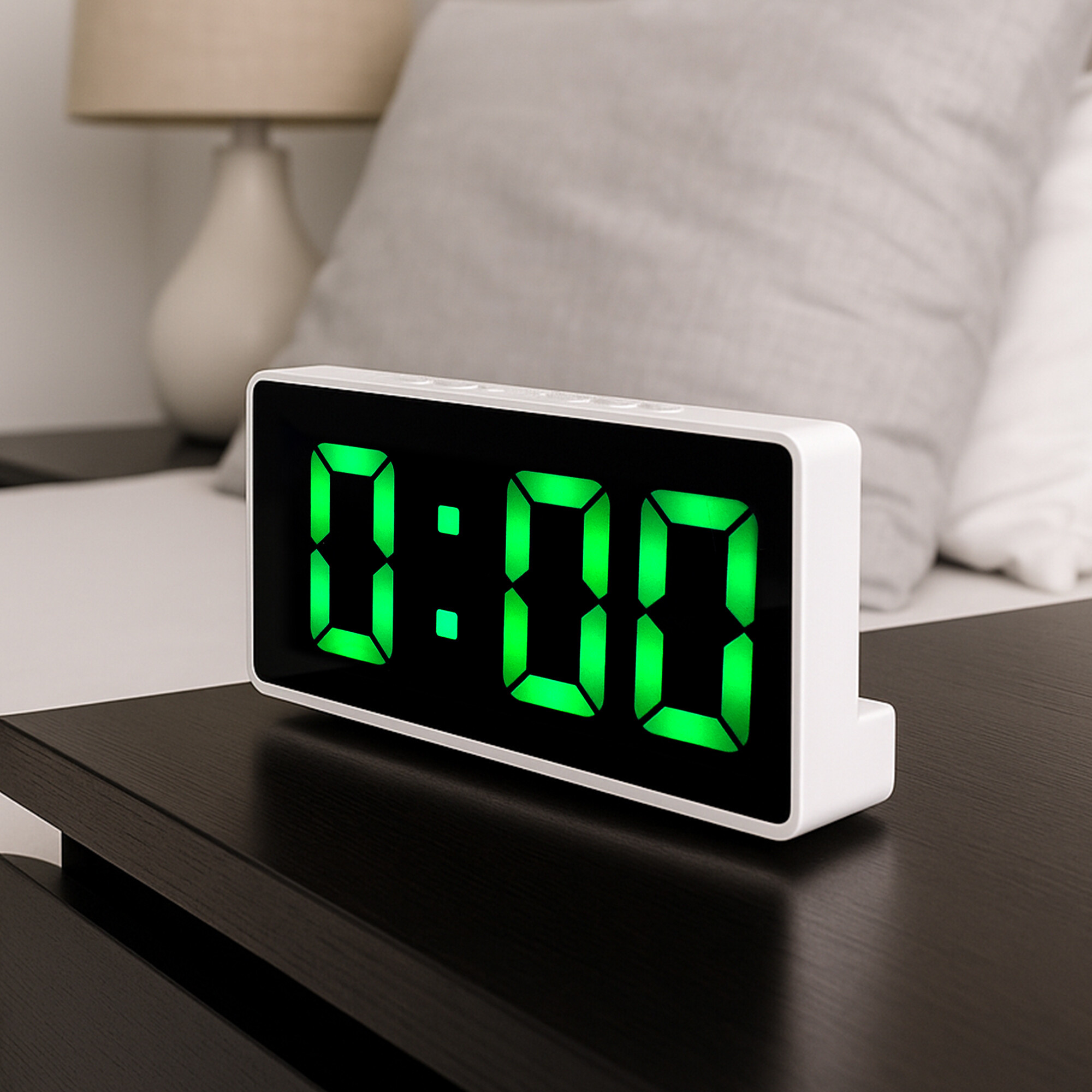Jas displeje lze snadno přizpůsobit vašim potřebám, což zajišťuje komfortní sledování času jak během dne, tak i v noci. Užijte si optimální viditelnost bez ohledu na světelné podmínky ve vašem pokoji.