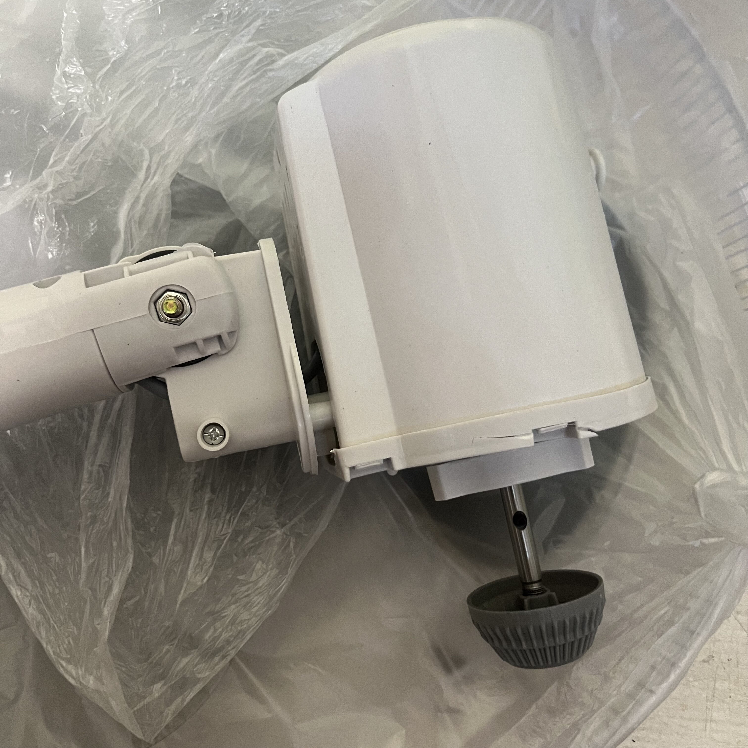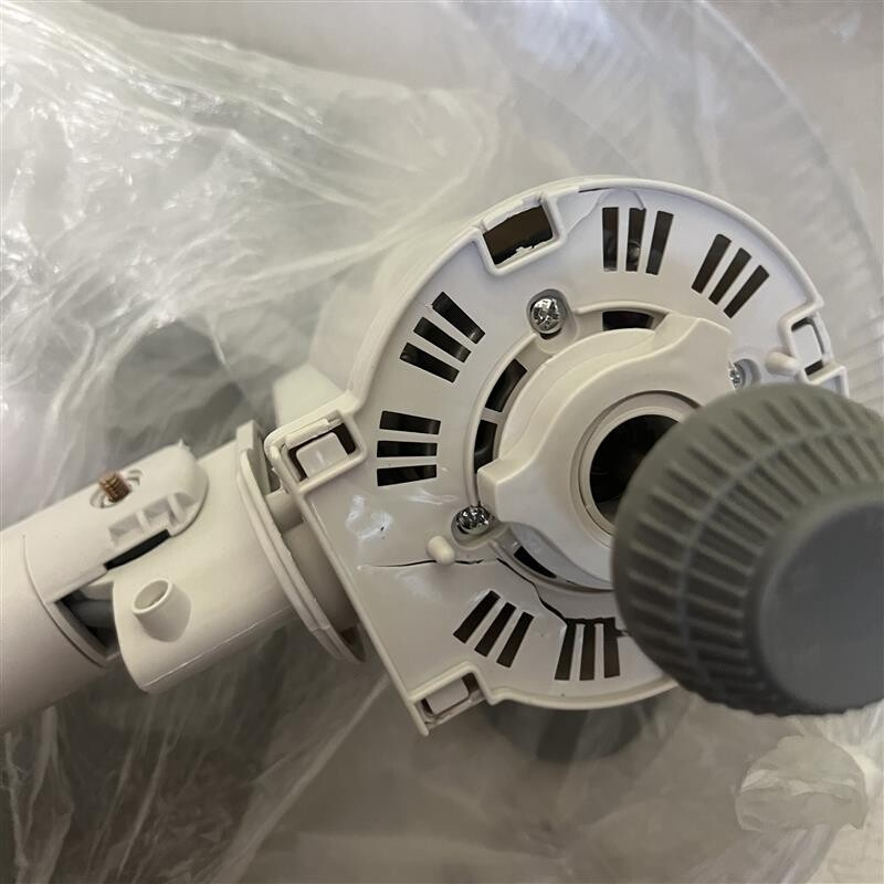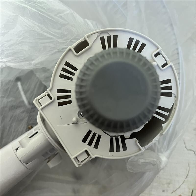 Ventilátor má několik drobných poškození viditelných na přiložených fotografiích. Tyto vady jsou pouze kosmetické a nemají žádný vliv na jeho funkčnost.