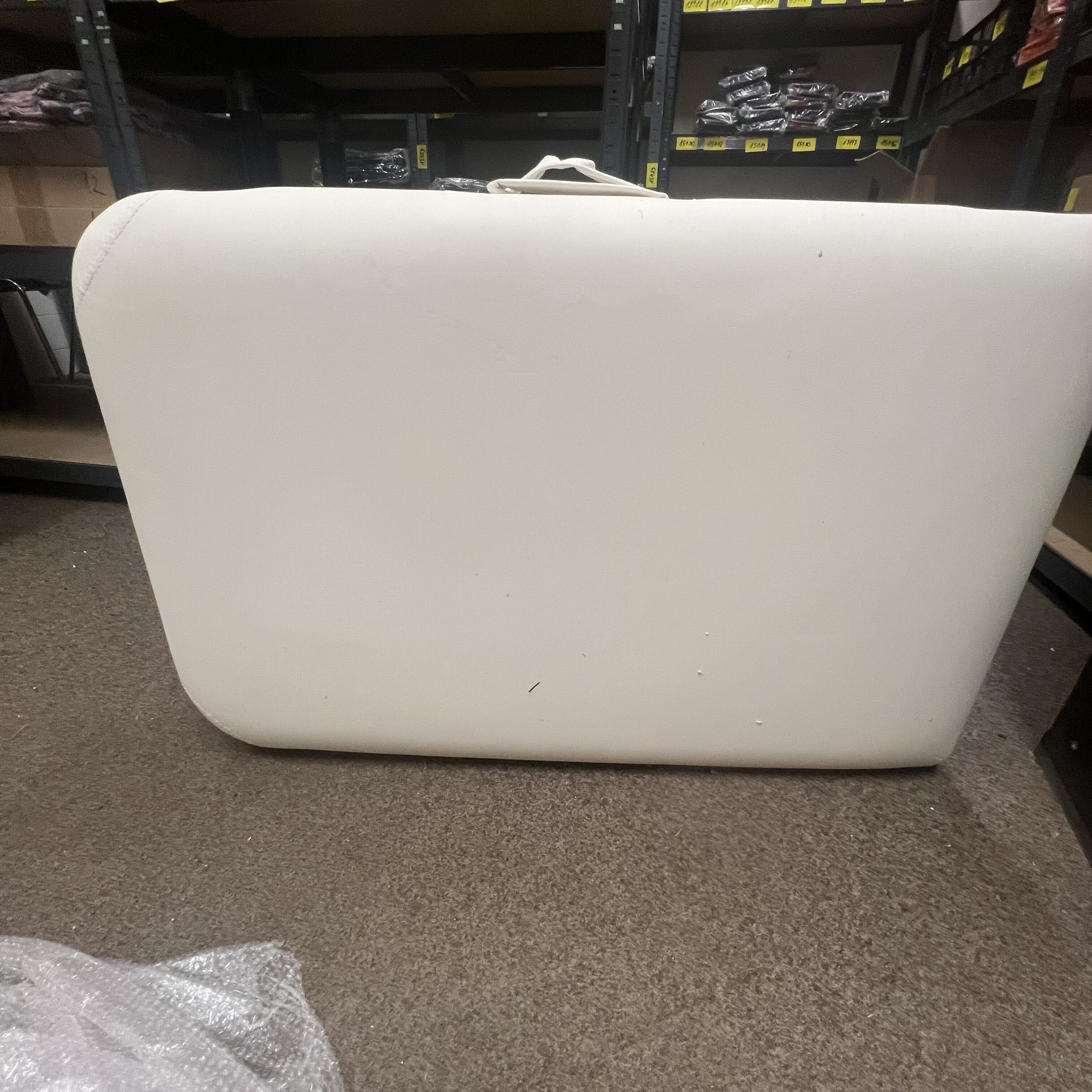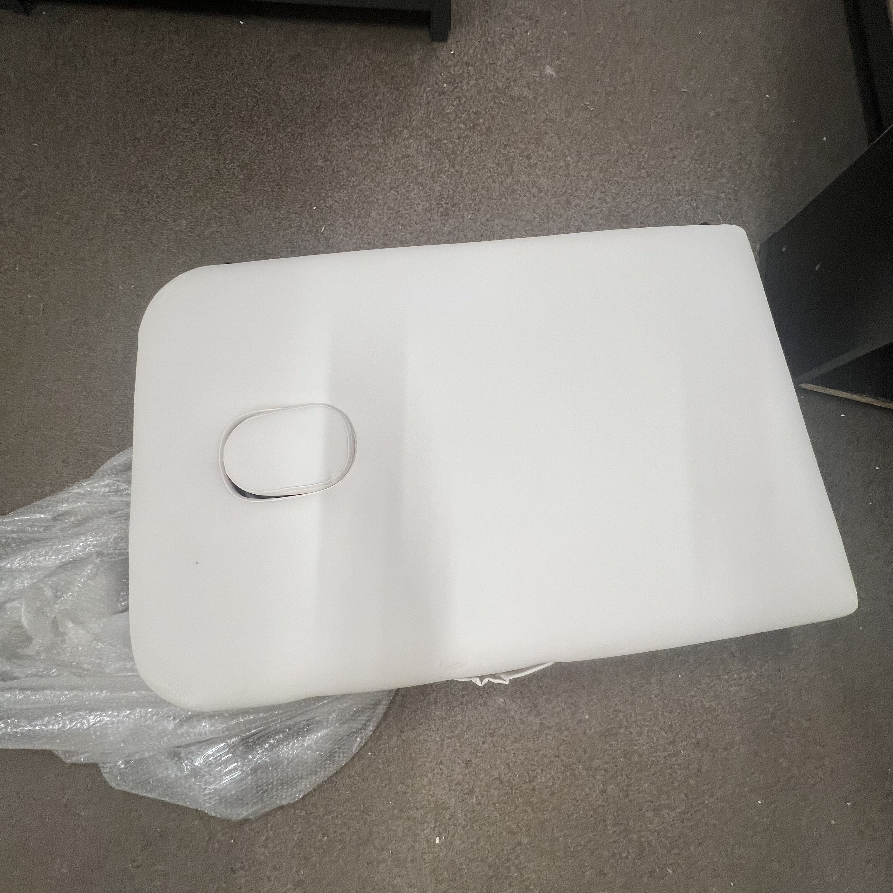 Masážní lehátko má v jednom místě díru a je mírně špinavé.