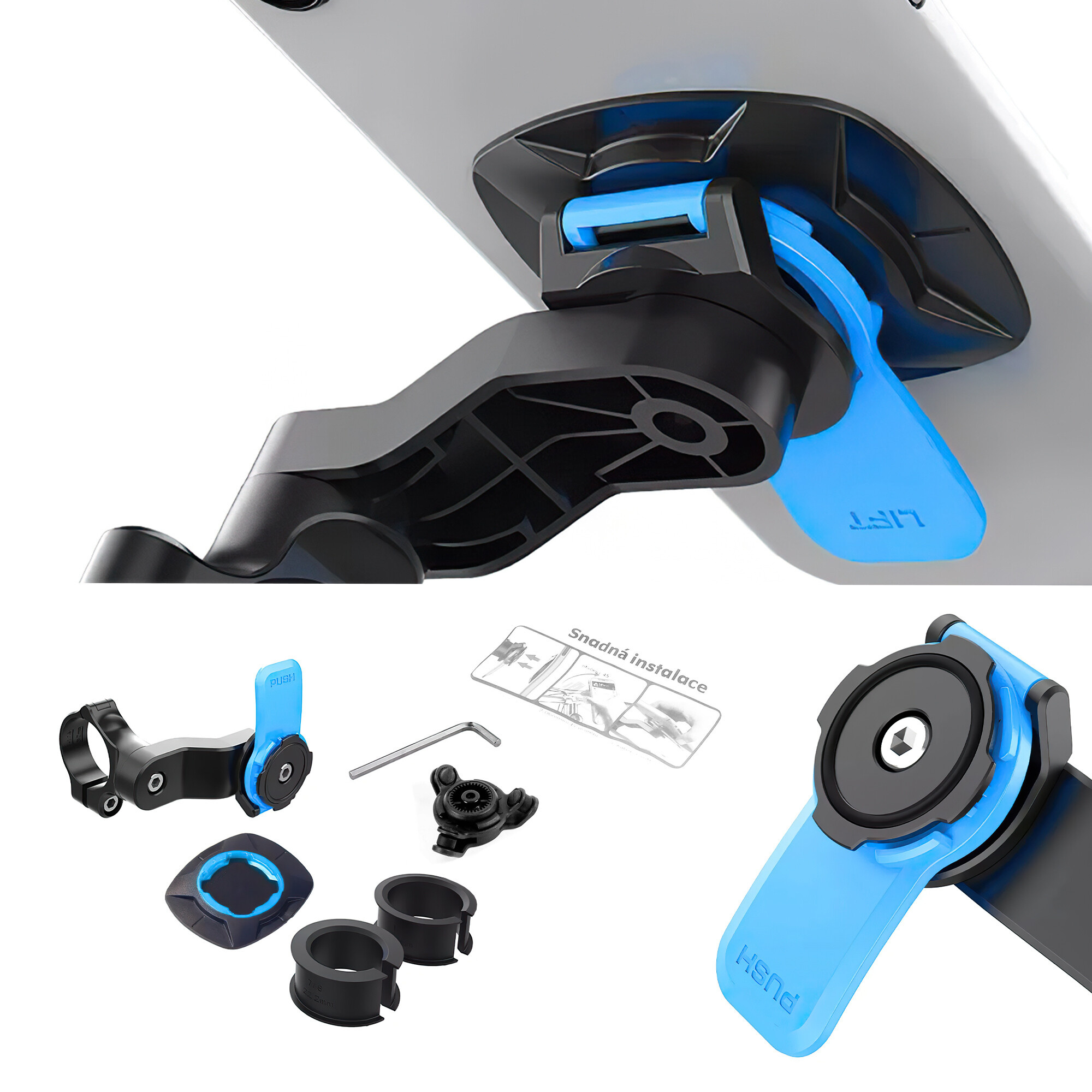 Instalace držáku je rychlá a jednoduchá. Díky promyšlenému designu a přiloženým vložkám pro různé průměry řídítek je montáž otázkou několika minut. Nemusíte se obávat složitého nastavování nebo speciálních nástrojů vše je navrženo tak, aby bylo co nejjednodušší a nejefektivnější.
