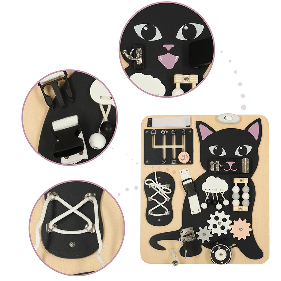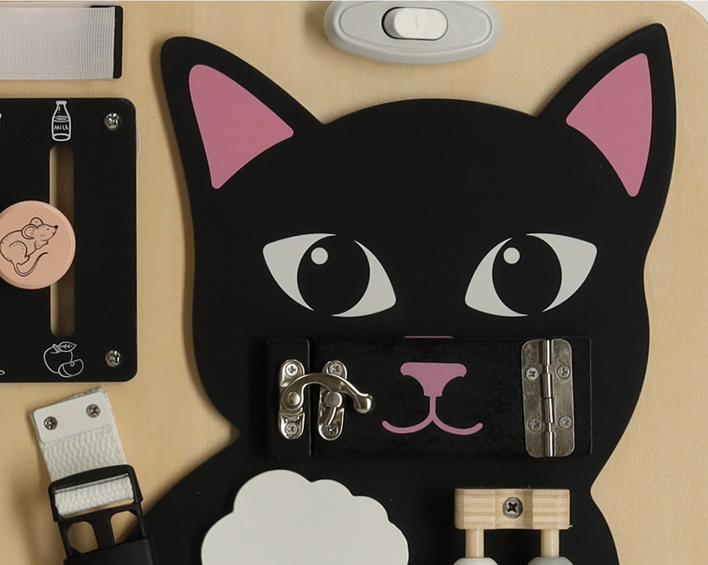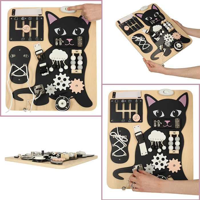 Senzorická tabule v této edici naučí vaše dítě zavazovat tkaničky, zapínat přezky a dokonce zacházet s klíči! To mu usnadní učení jednoduchých každodenních úkolů!