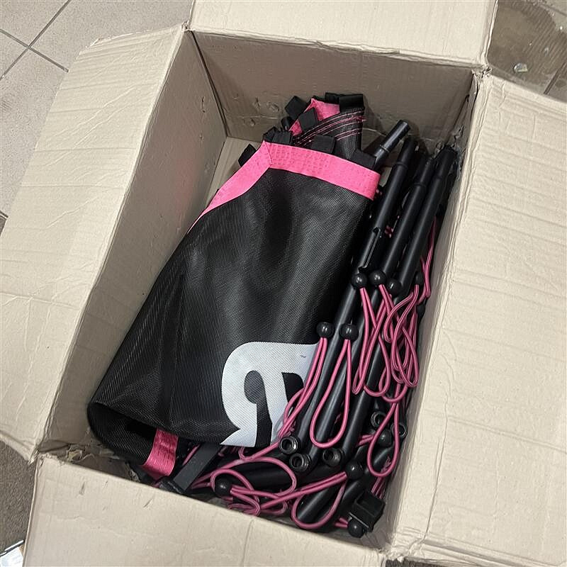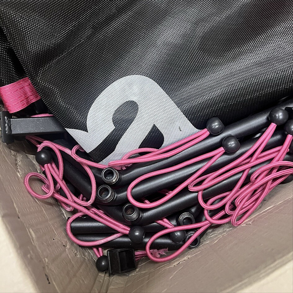 Trampolína byla použita k reklamním účelům a nese známky montáže a používání. Plně funkční, vhodná pro okamžité sestavení a provoz.