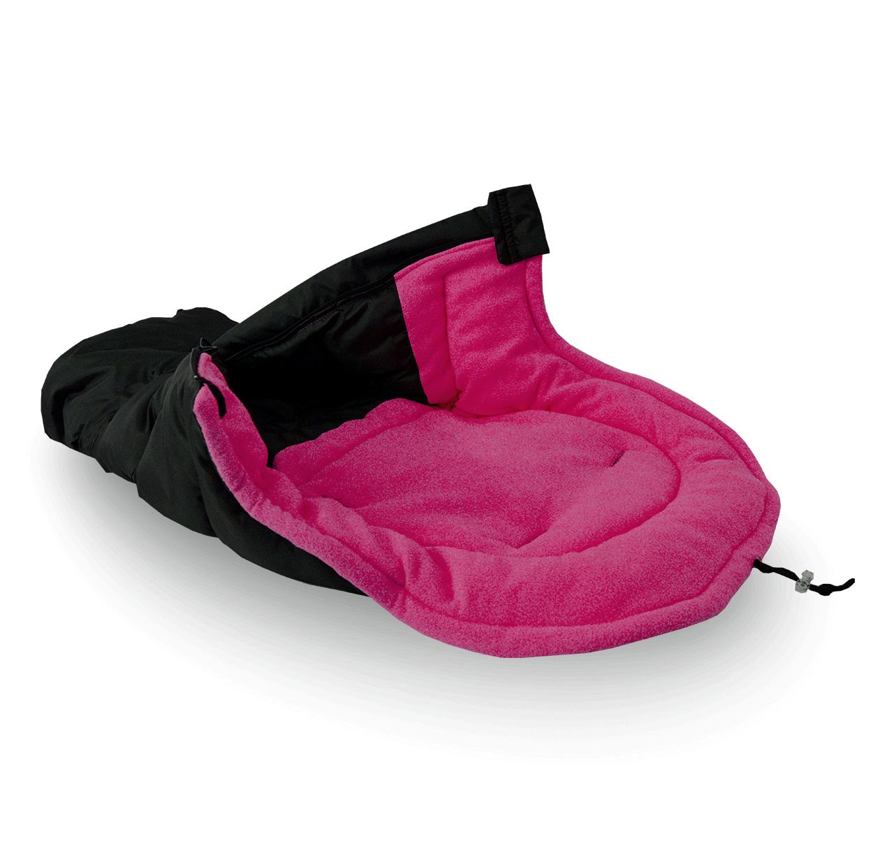 Dětský fusak má rozepínací zip, otvory na 5-bodové bezpečnostní pásy a gumové úchytky umožňující připevnění ke kočárku.