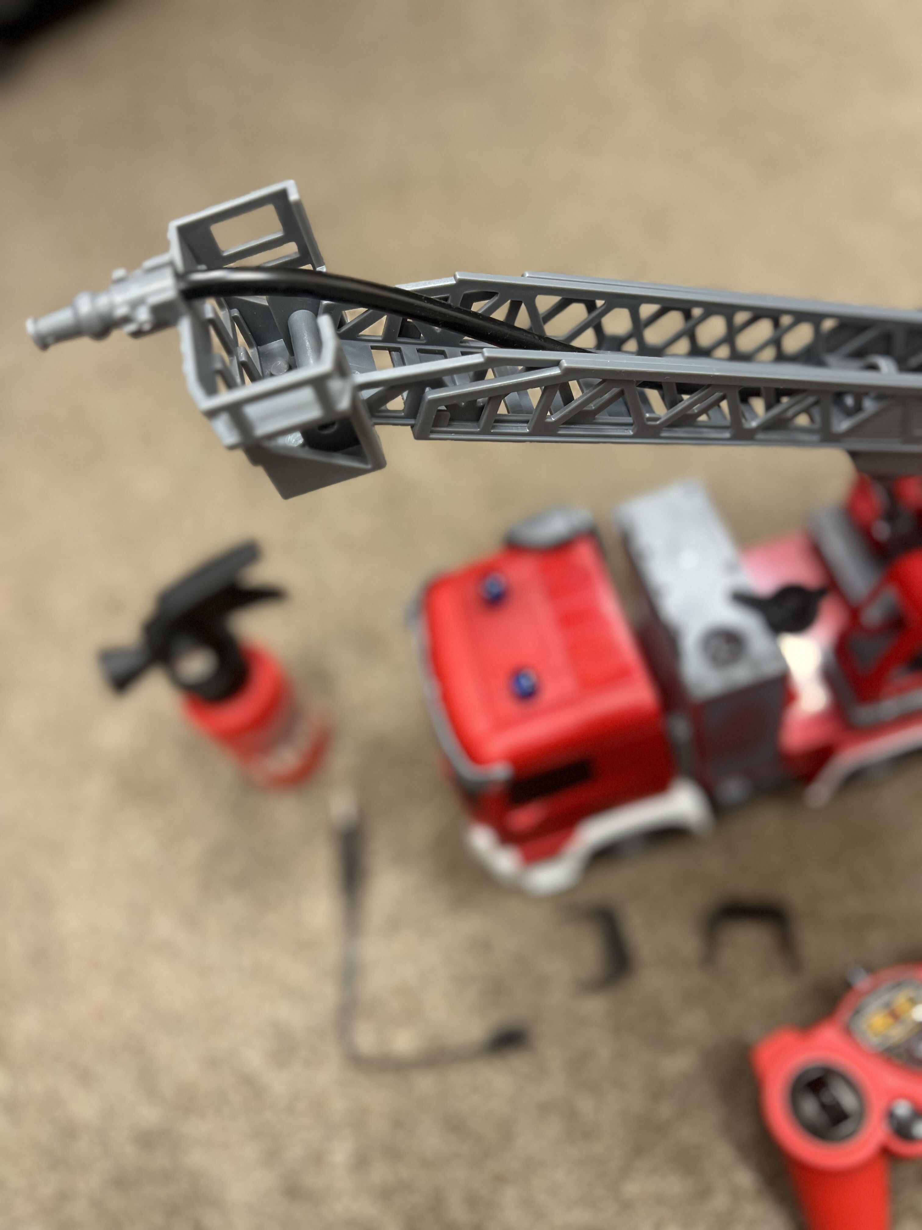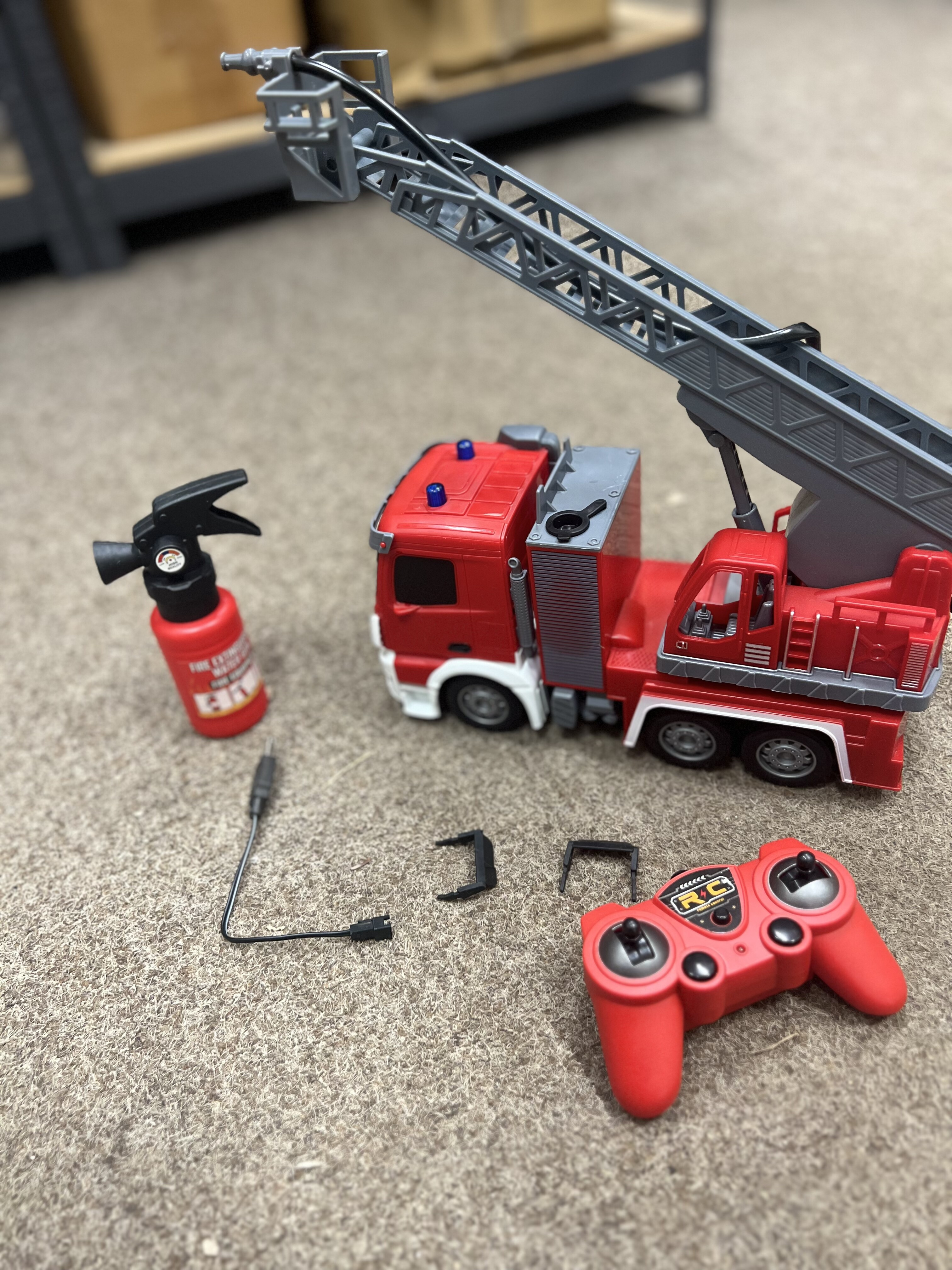 - Balení obsahuje - hasičské vozidlo, USB nabíječka (kabel), 3,7V baterii a hasící přístroj (pro snadnější plnění nádrže s vodou)