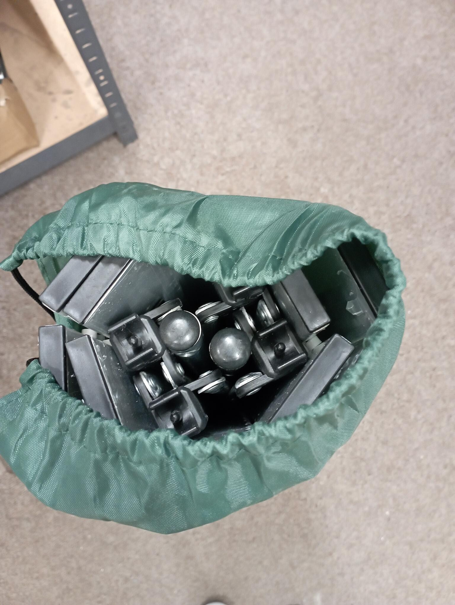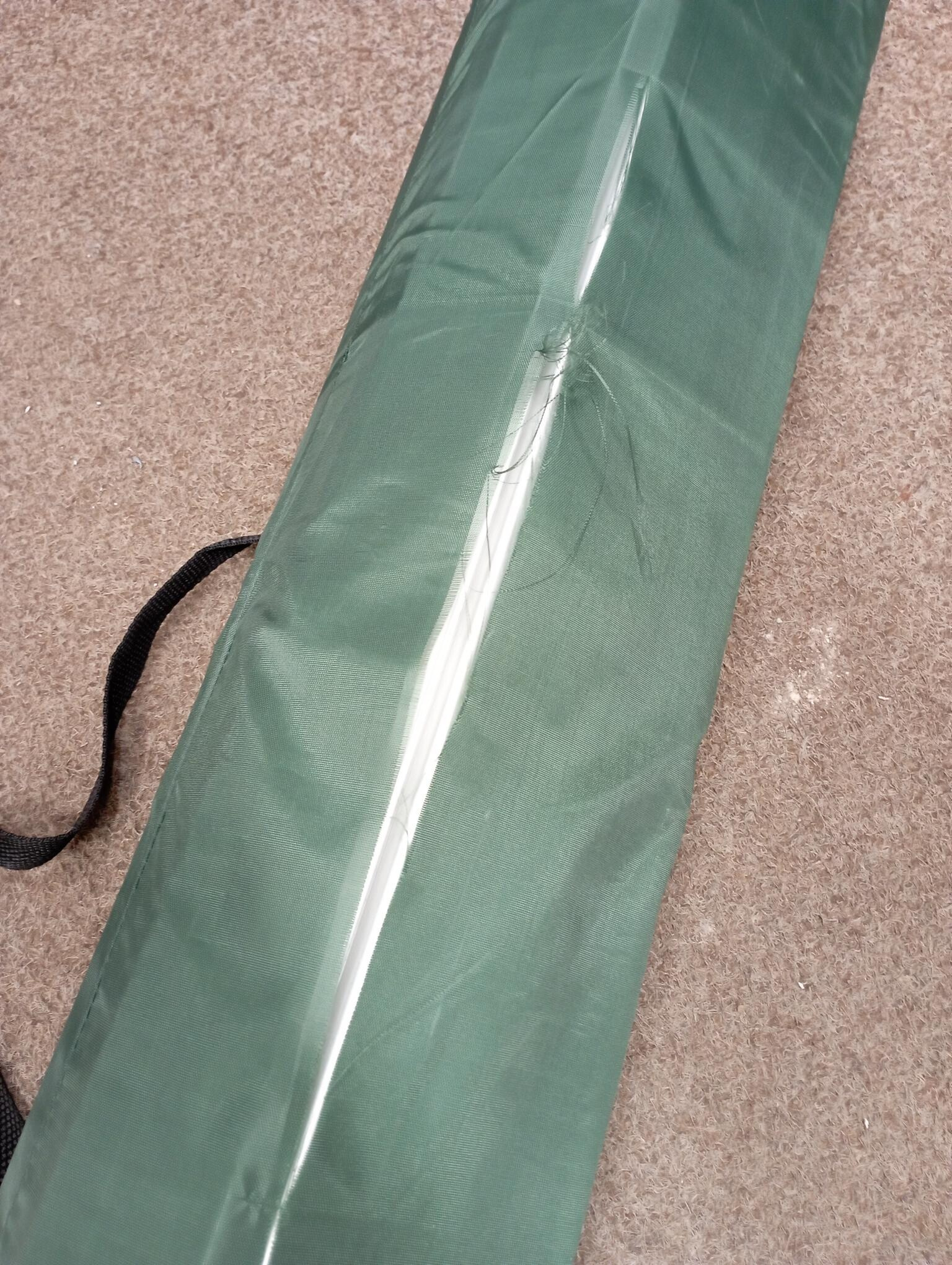 Tento kus má rozříznutou přepravní tašku. Stůl má stále v ochrannou fólii, je mírně podřený, jinak kompletní a plně funkční.