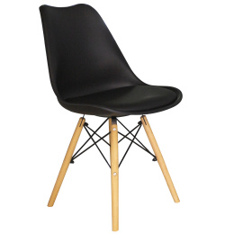 Židle je vyrobena z kvalitního a odolného polypropylenu s polštářem v potahu umělé kůže v kombinaci podnože z bukového dřeva.