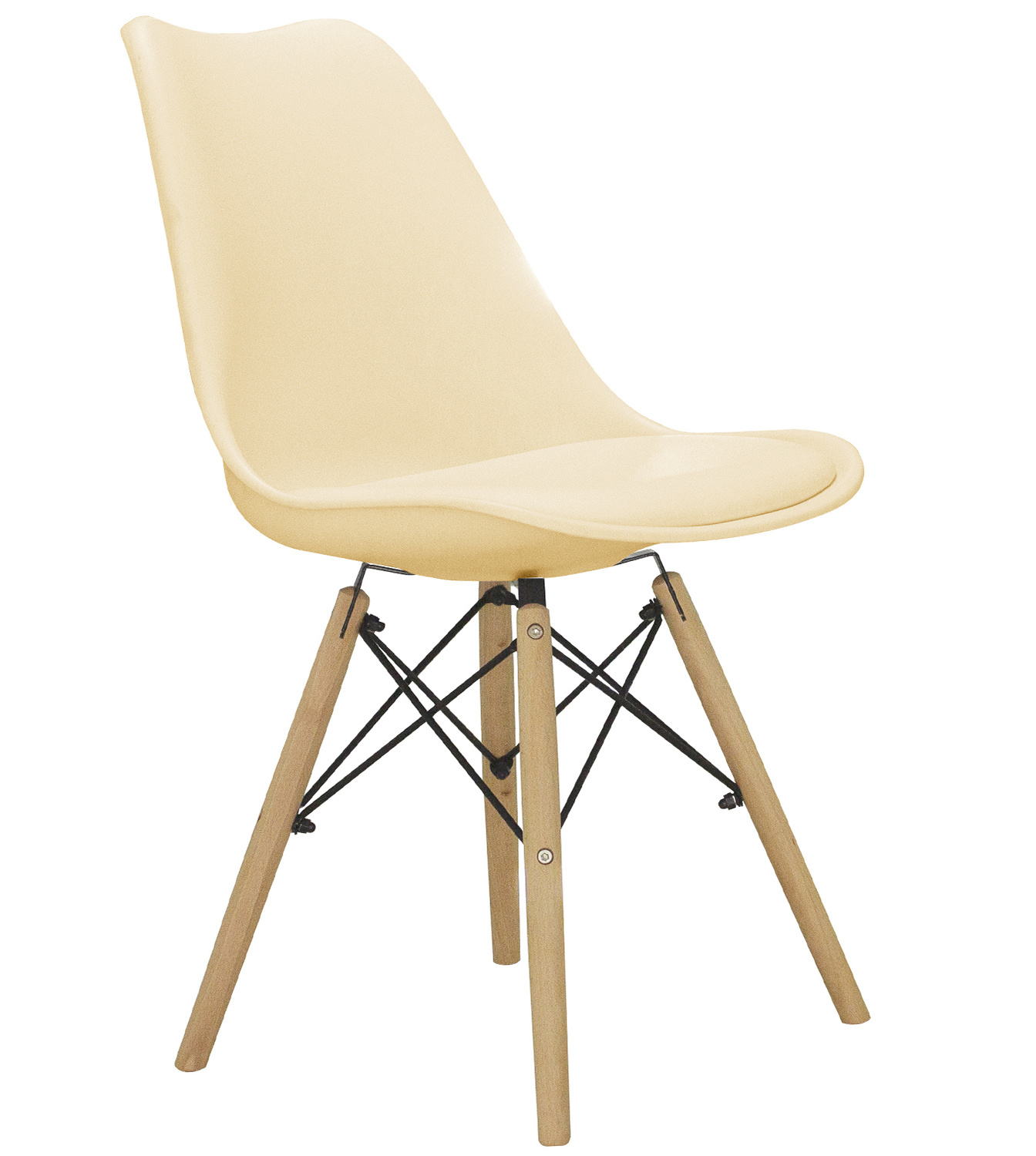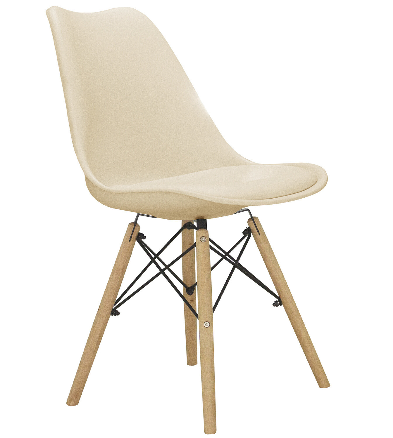Židle je vyrobena z kvalitního a odolného polypropylenu s polštářem v potahu umělé kůže v kombinaci podnože z bukového dřeva.