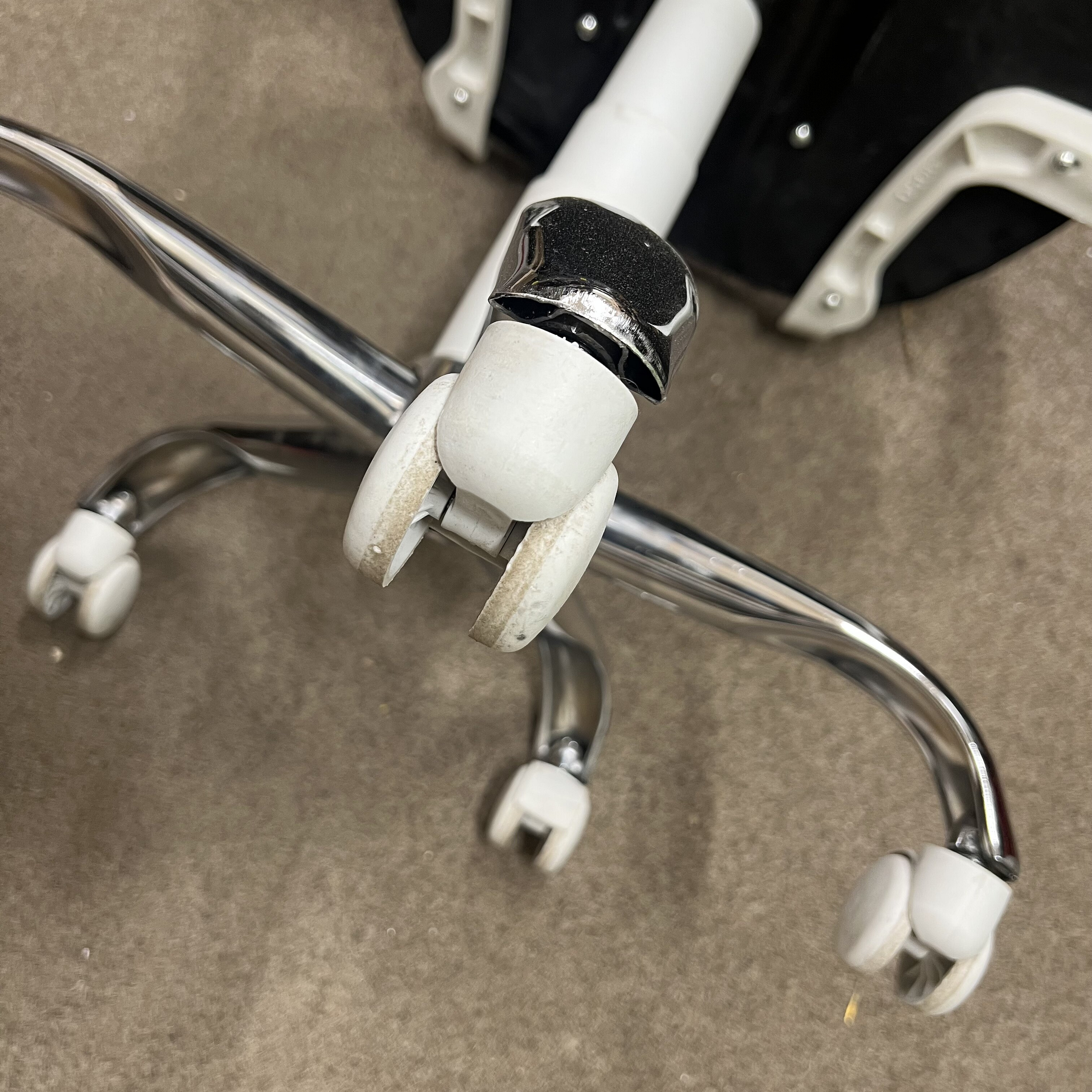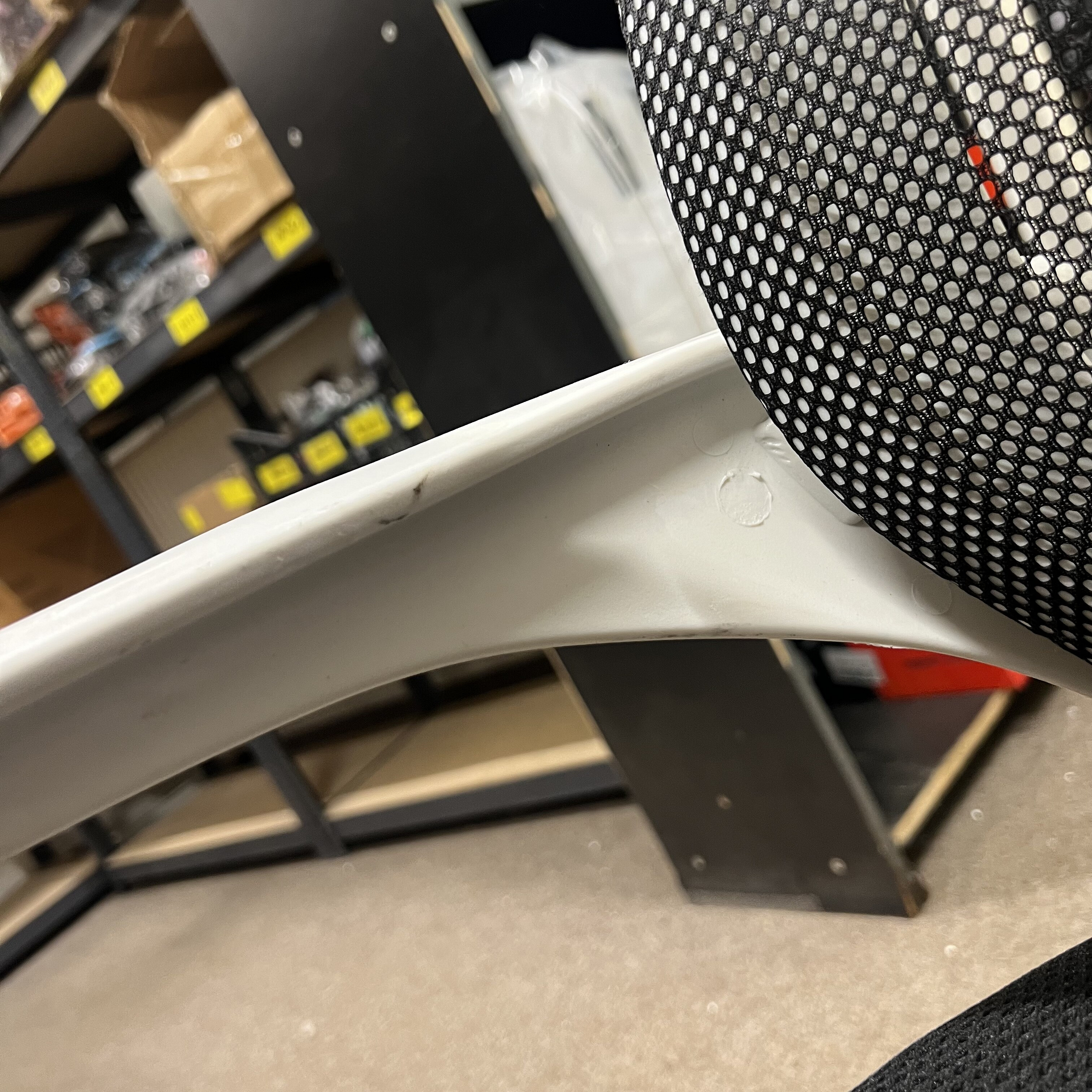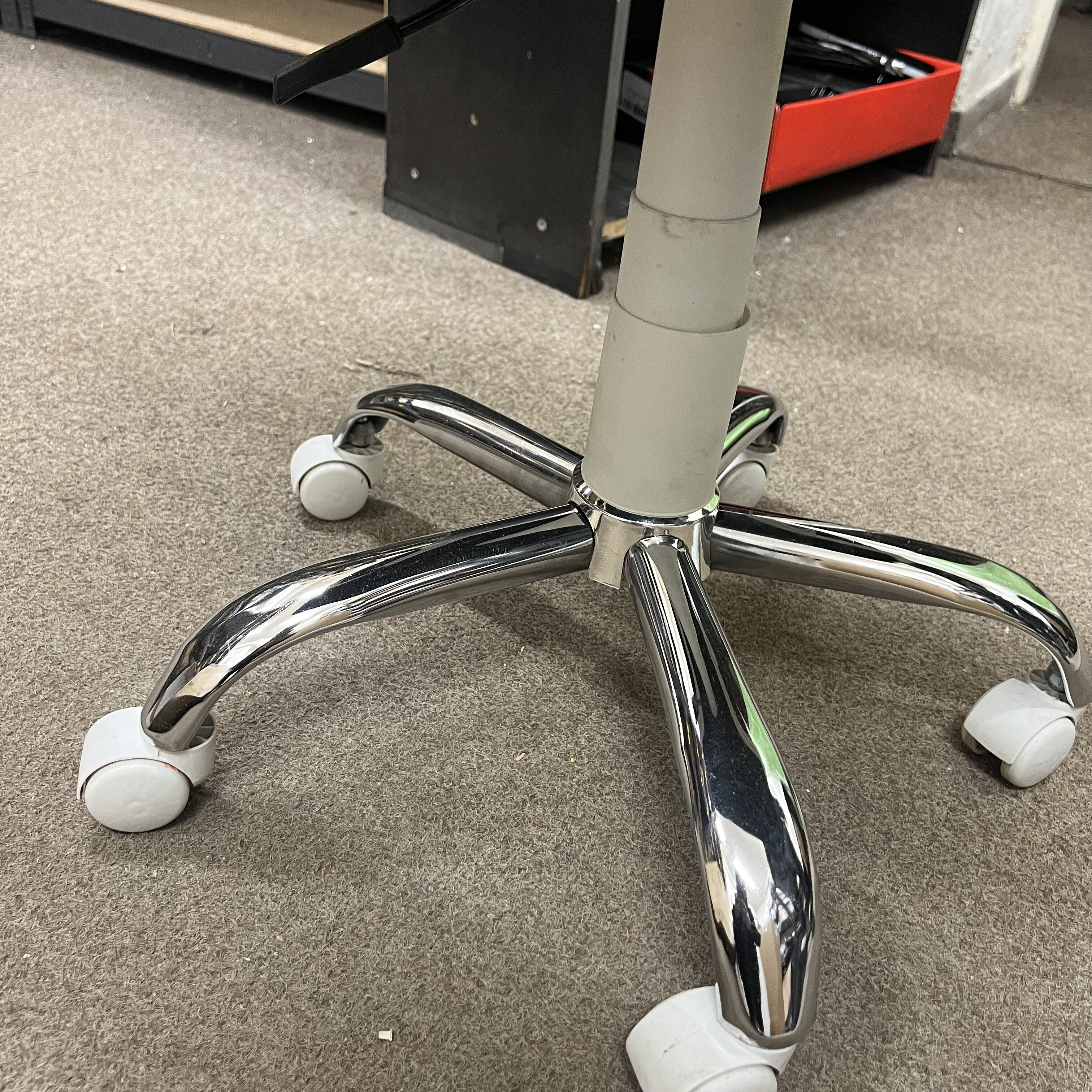 Kancelářská židle se ohýbá doleva, lze si ji opravit.