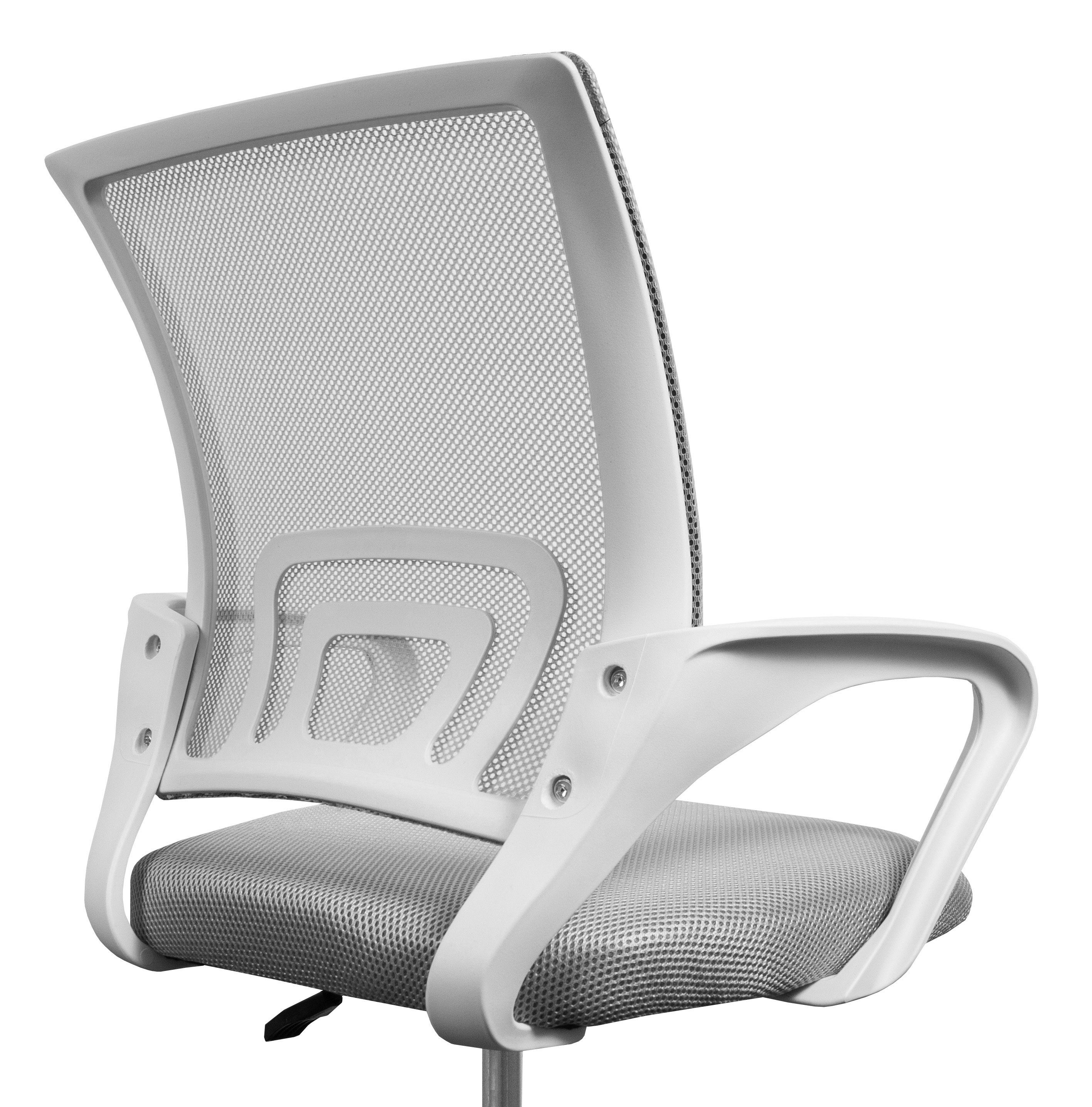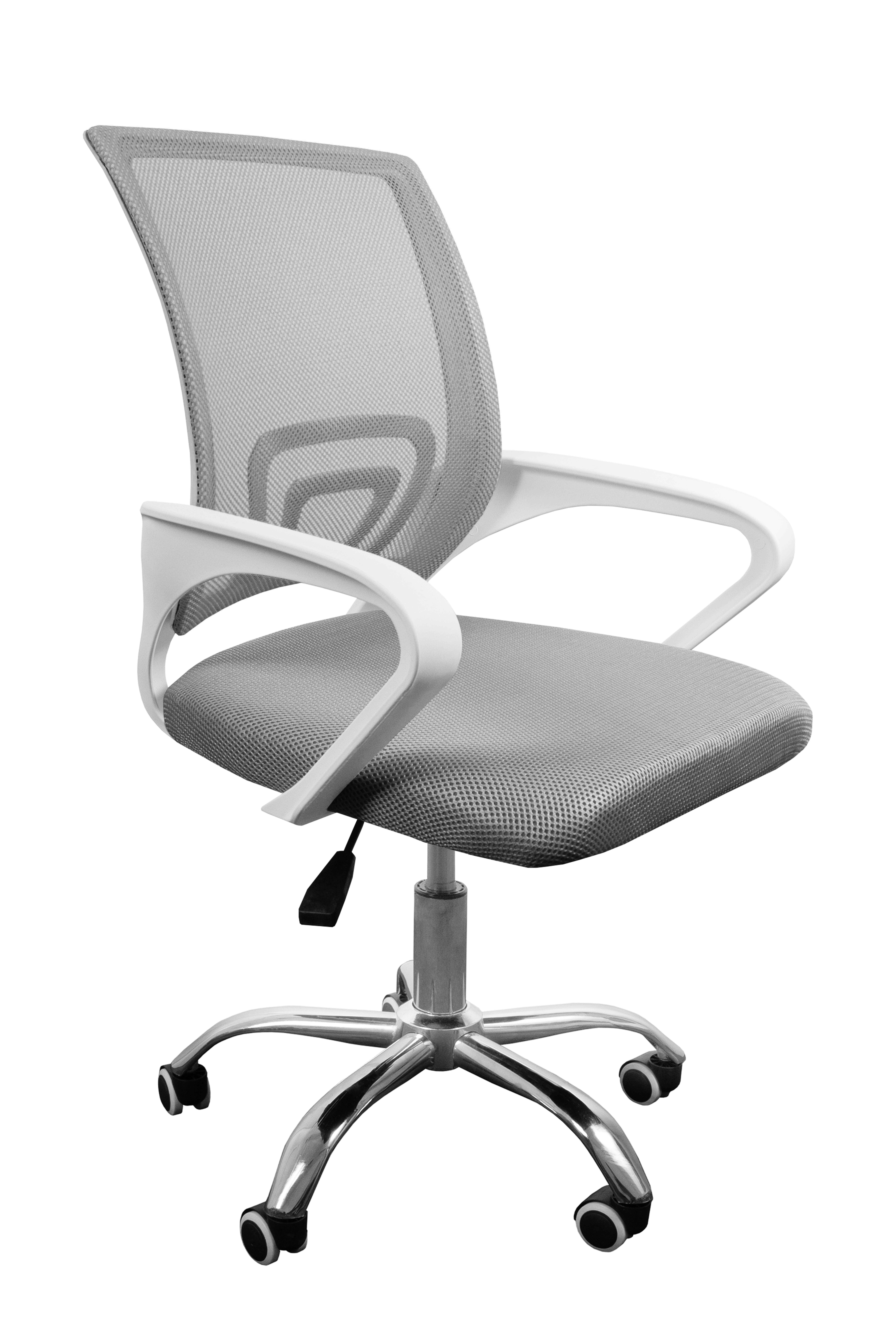 Kancelářská židle bez podhlavníku, která je vyrobená v šedo - šedé barvě v kombinaci síťoviny a plastu.