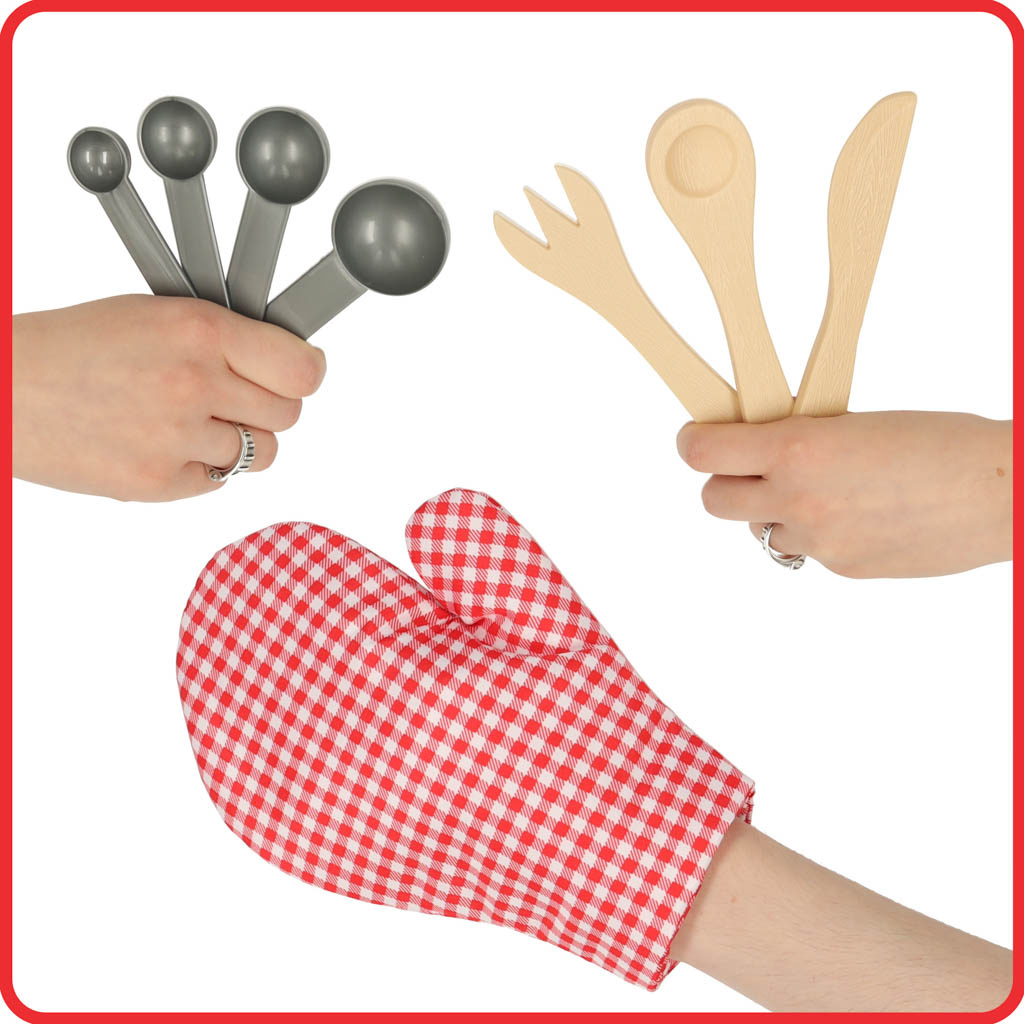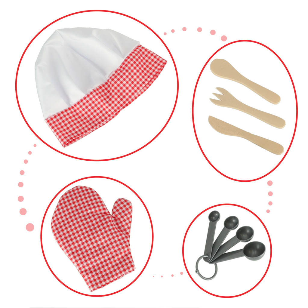 Doplňky obsažené v sadě, jako jsou odměrky a příbory, se k celému oblečku dokonale hodí!