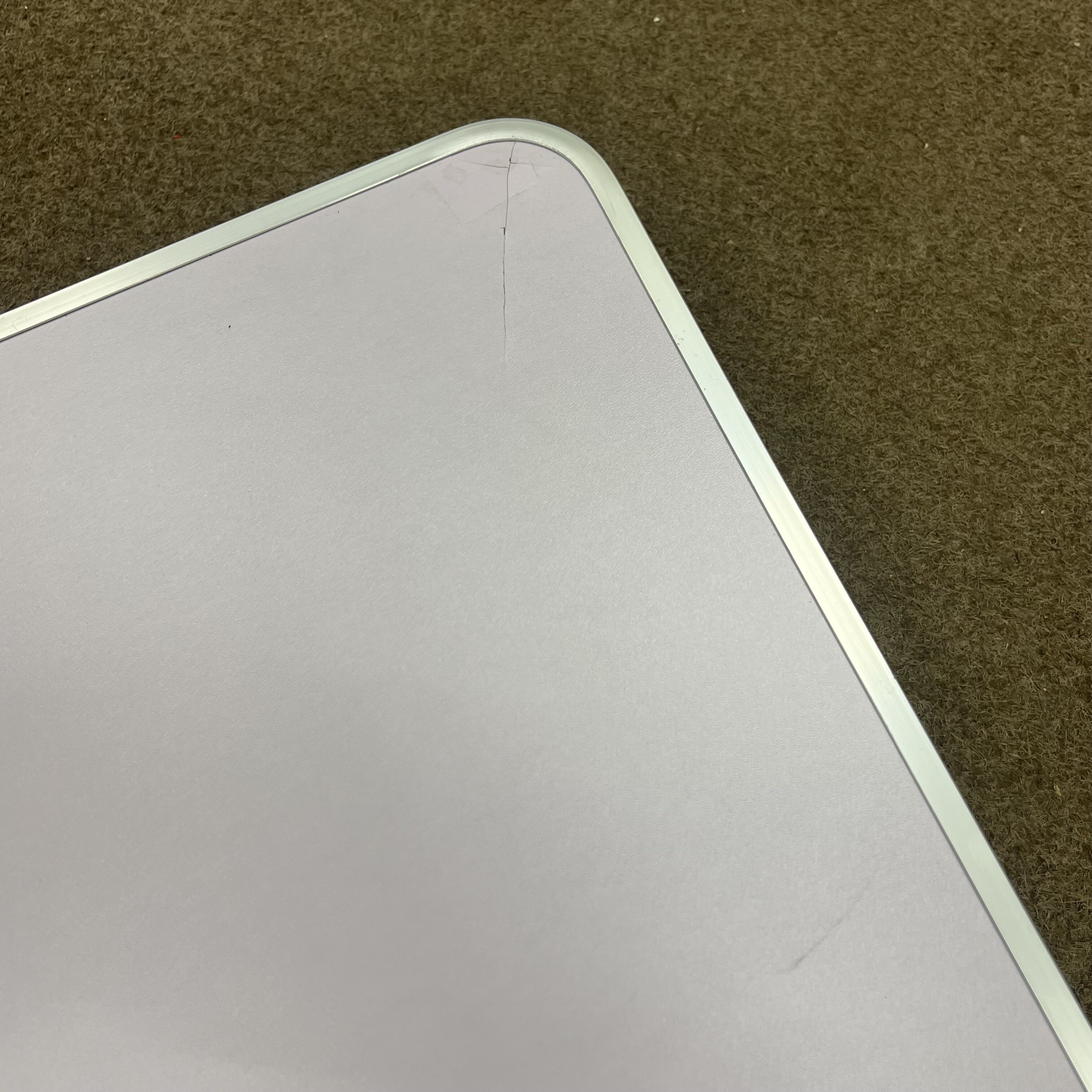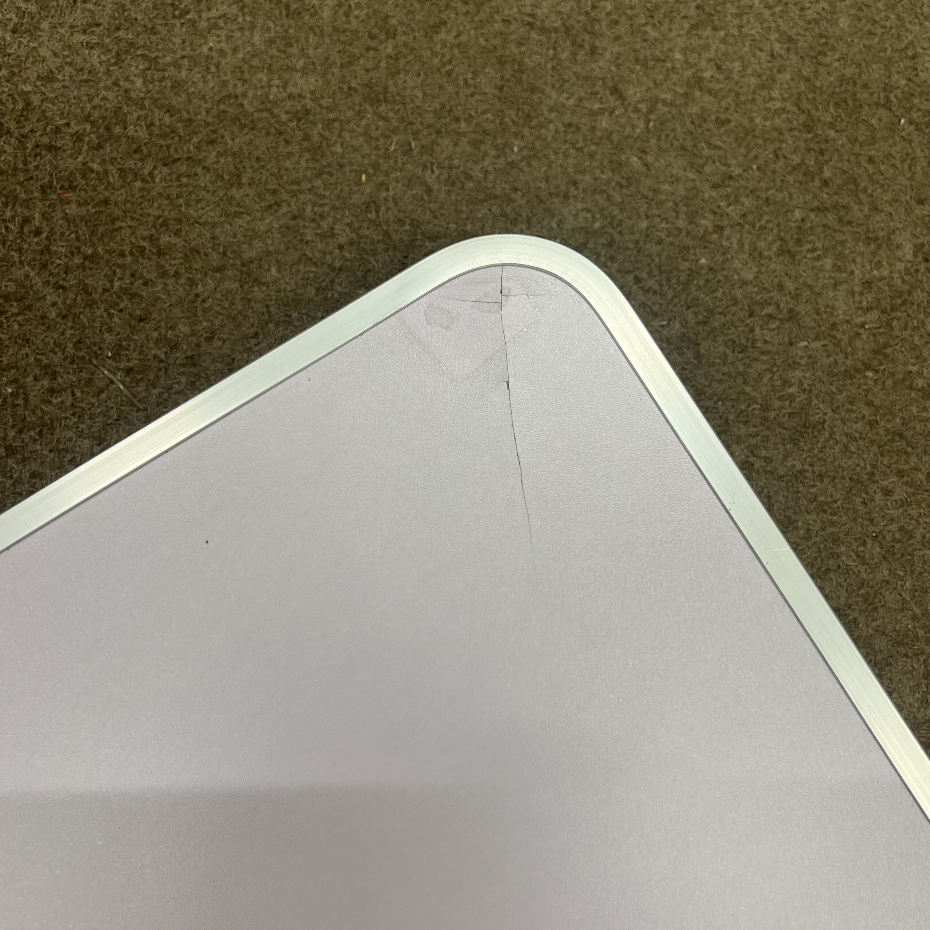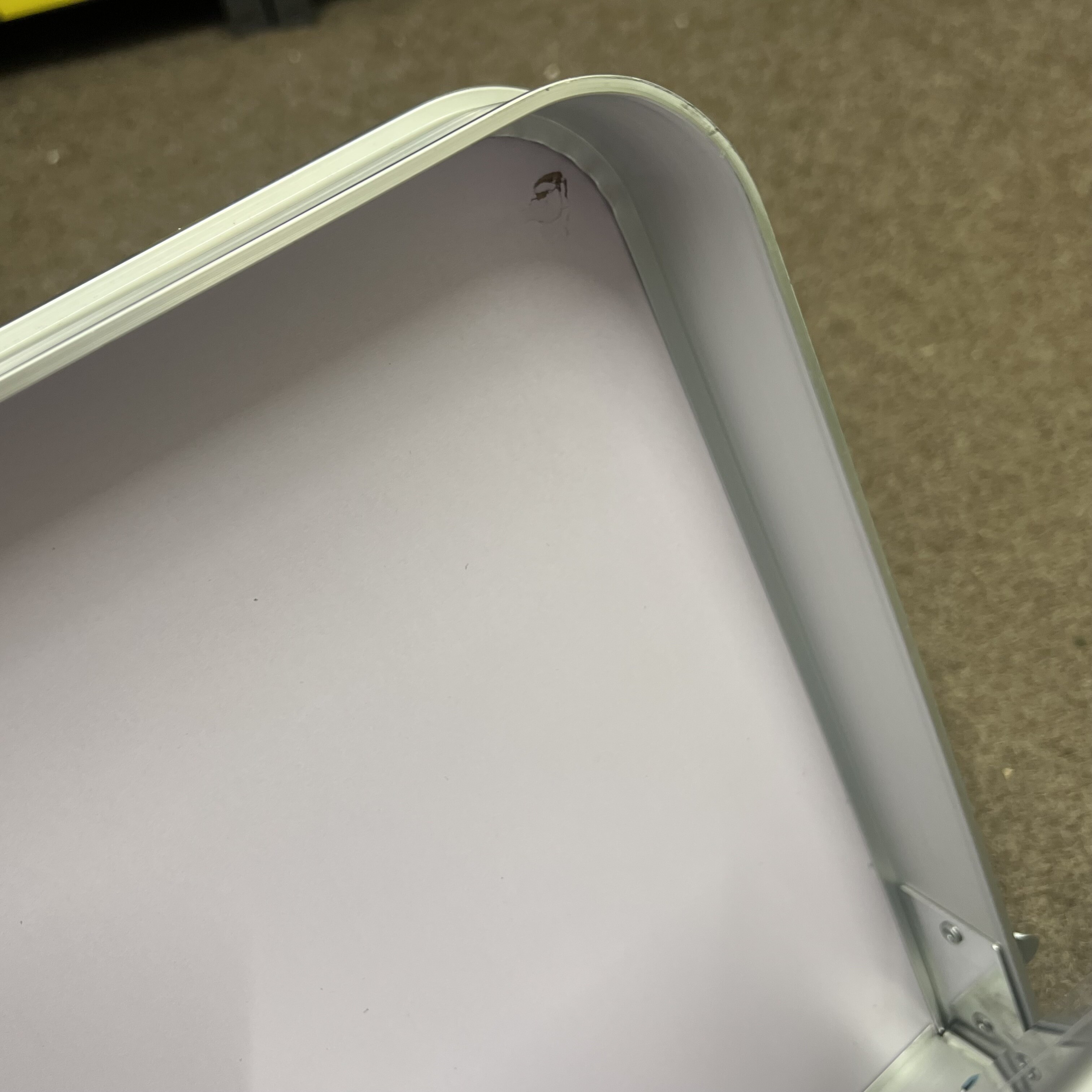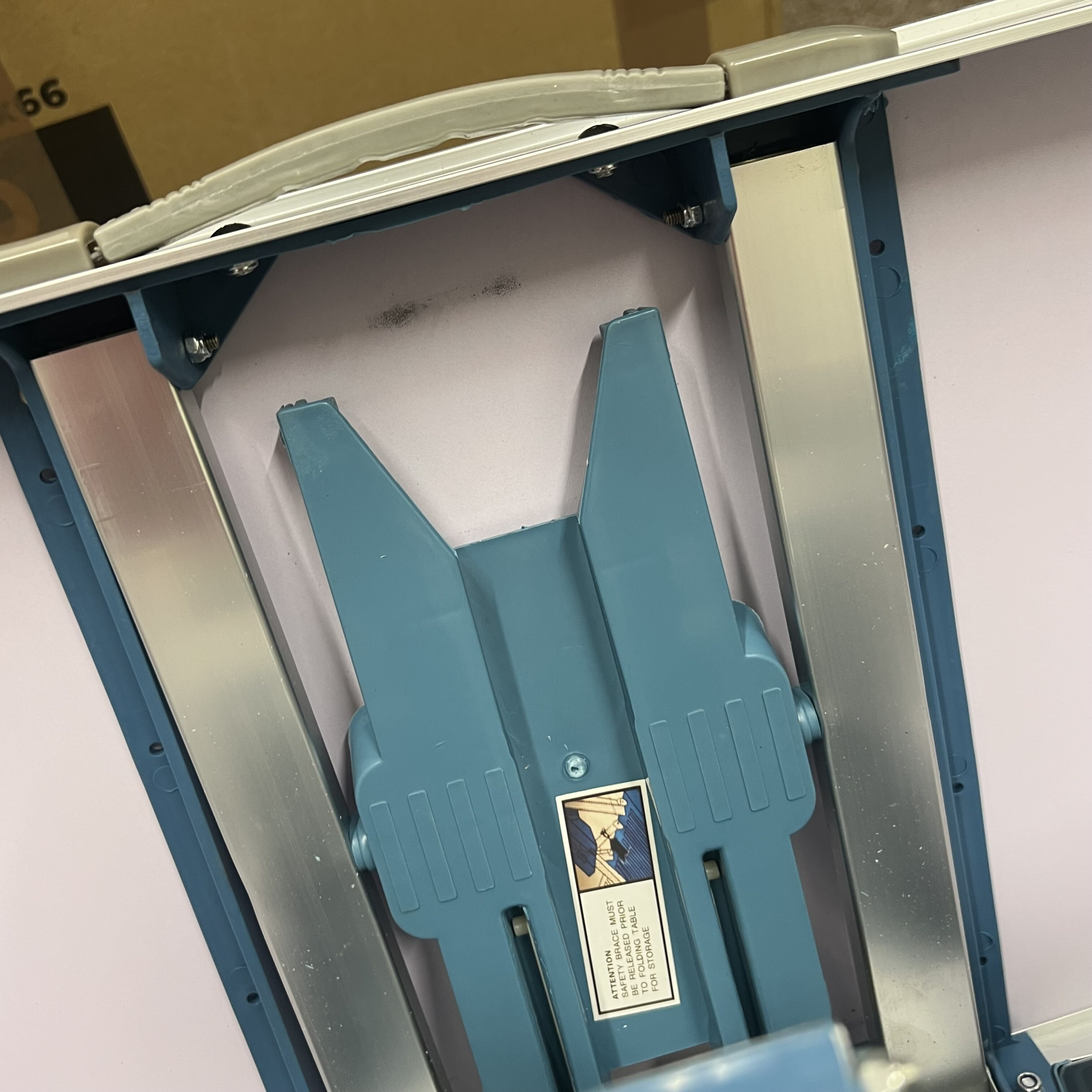 Kempingový stůl má na jednom rohu malou promáčklinu.