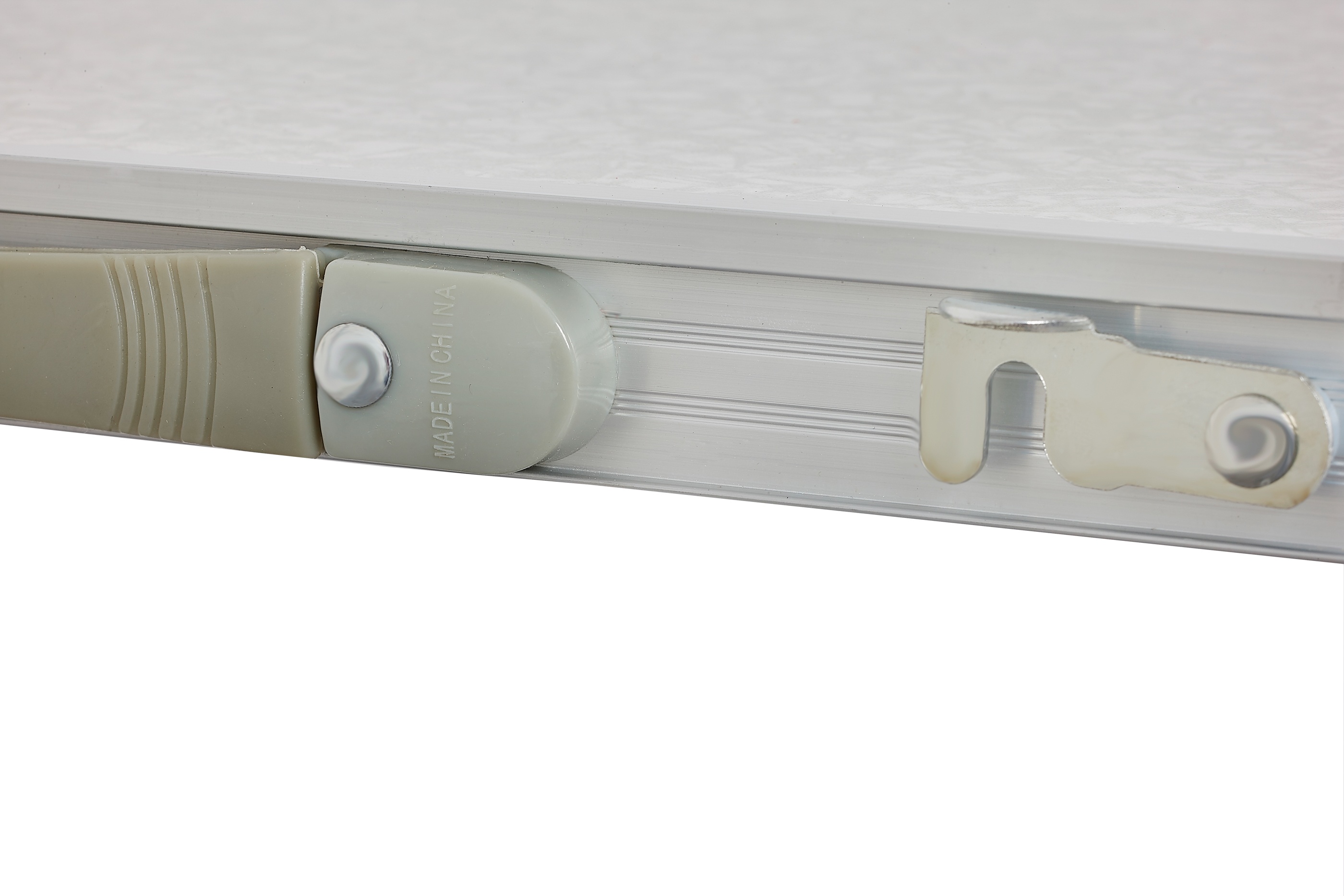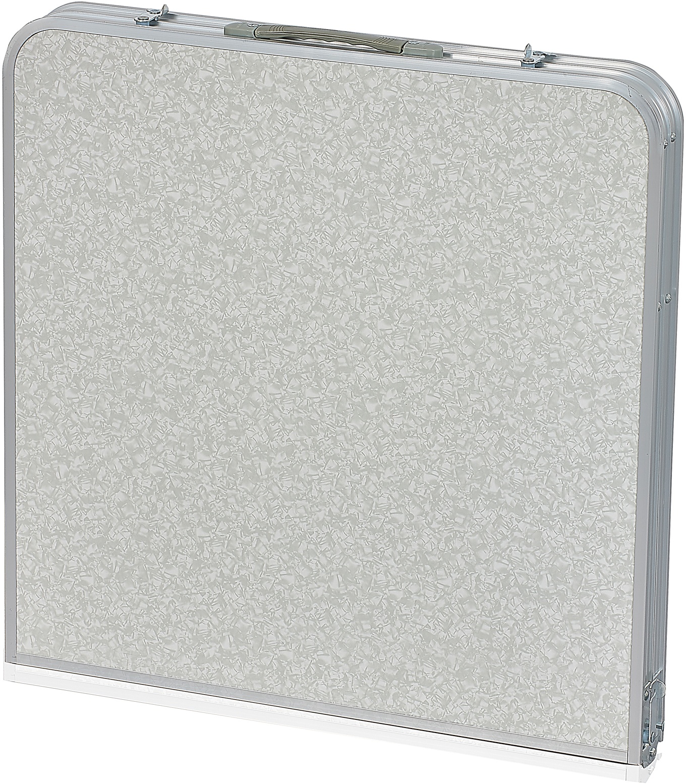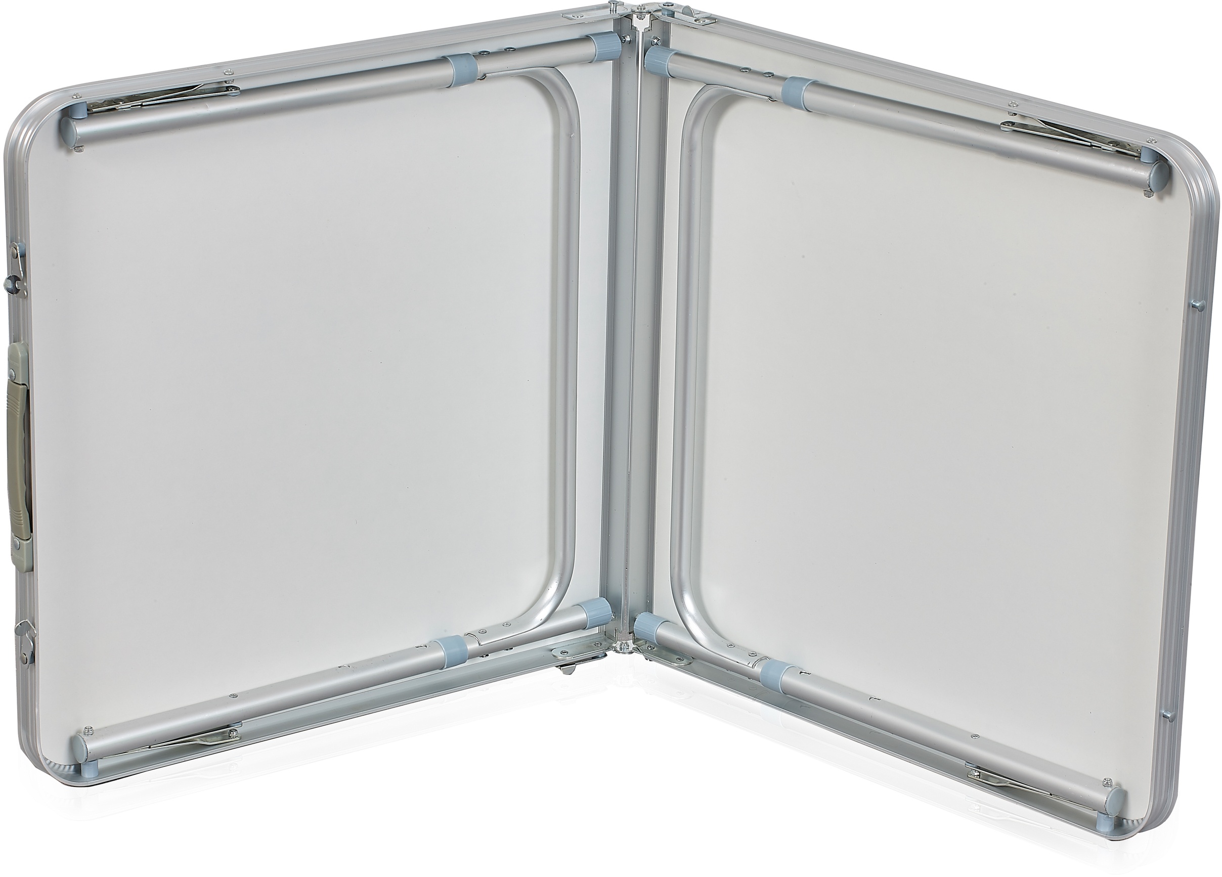 - Ve sbaleném stavu je stůl snadno přenosný v podobě ploché desky s uchem