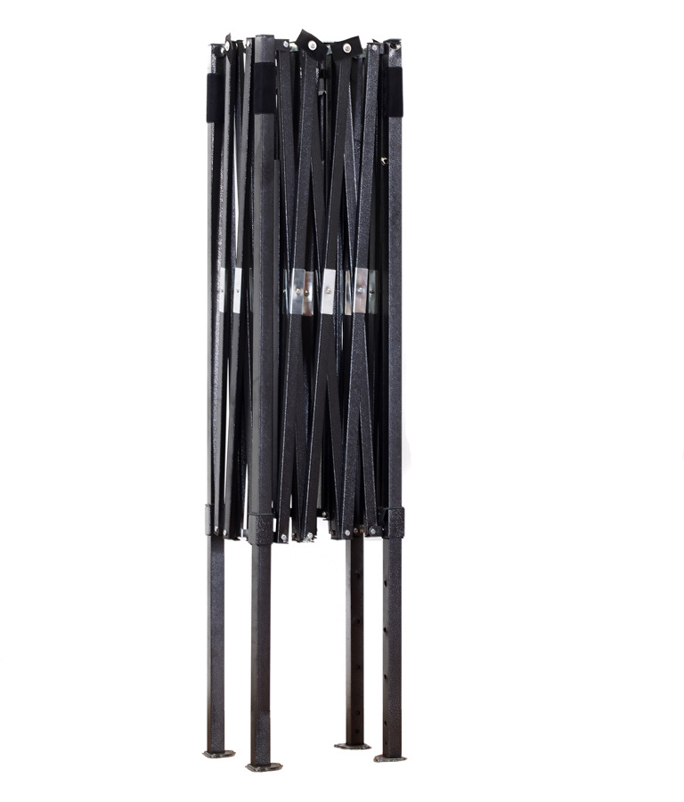 Konstrukce je vyrobená z pevných kovových práškově lakovaných profilů čtvercového tvaru. Nohy konstrukce stánku jsou ve spodní části opatřeny patkami s otvory sloužícími pro ukotvení k pevnému povrchu.