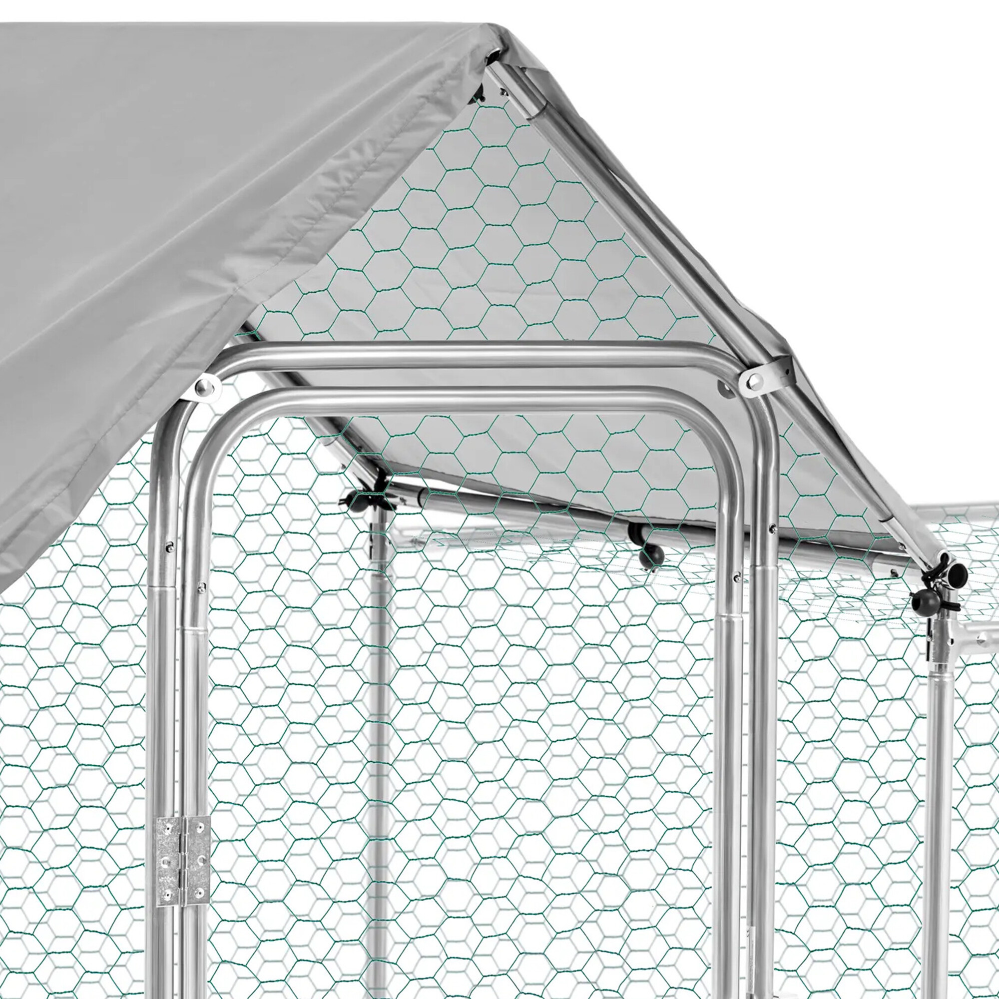Součást tvoří rovněž střecha z OXFORD tkaniny odolná vůči UV záření. Ta chrání před sluncem, deštěm, sněhem a dalšími klimatickými podmínkami. Kromě toho je vybaven dvířky, což poskytuje větší flexibilitu při vstupování a vystupování.