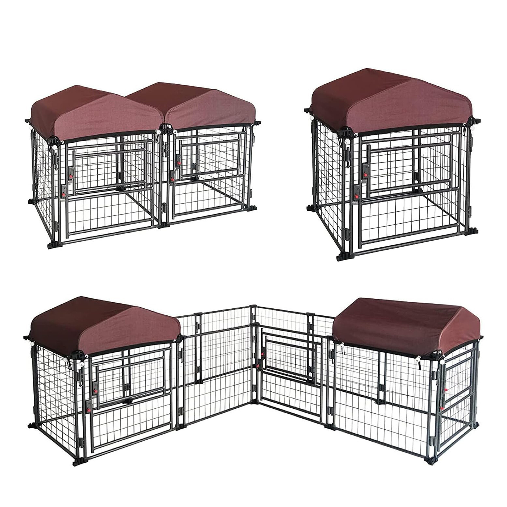 Čtyři jednotlivé kovové díly lze snadno spojit pomocí spojovacích pantů. Kotec lze kombinovat s dalšími kotci značky Aga v různých variantách podle Vašich prostorových možností. Kromě toho je vybaven dvířky, což poskytuje větší flexibilitu při vstupování a vystupování.