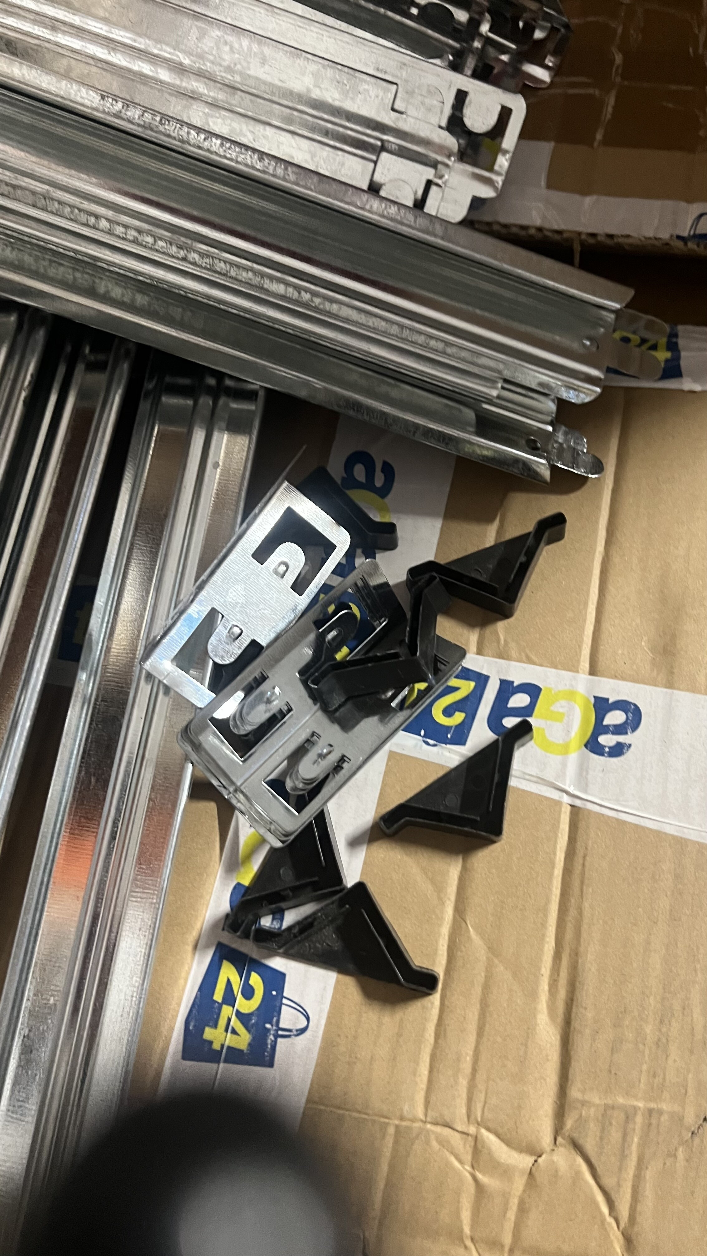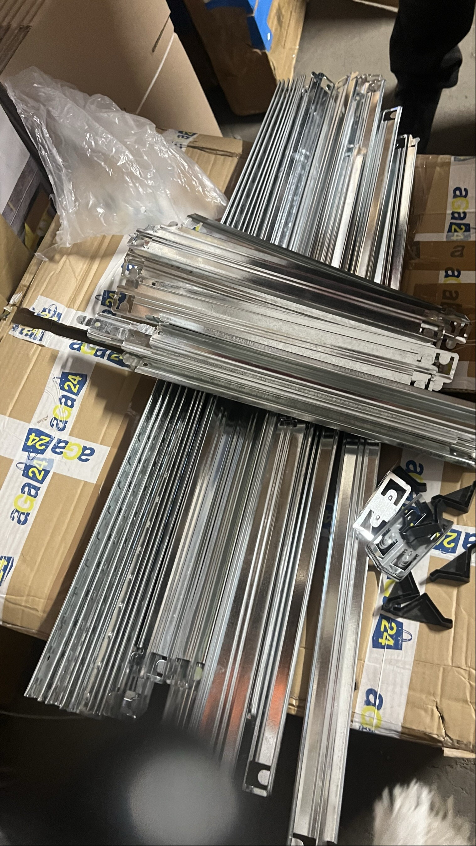 Kovový regál je bez originálního obalu, má mírné poškození polic.
