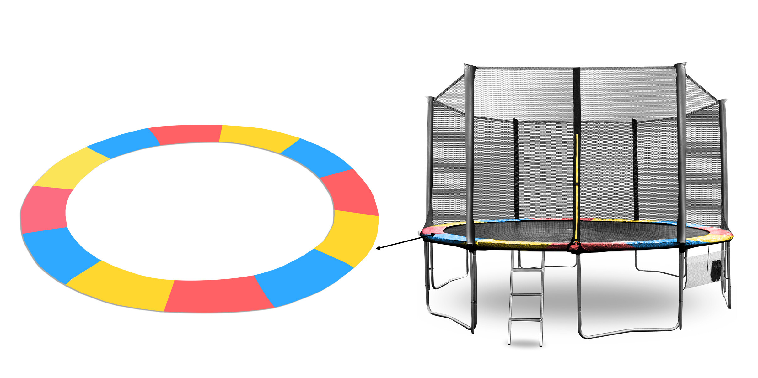 Ochranný kryt pružin (polstrovaný obvodový pás) slouží především k dosažení maximální možné bezpečnosti při používání Vaší trampolíny.