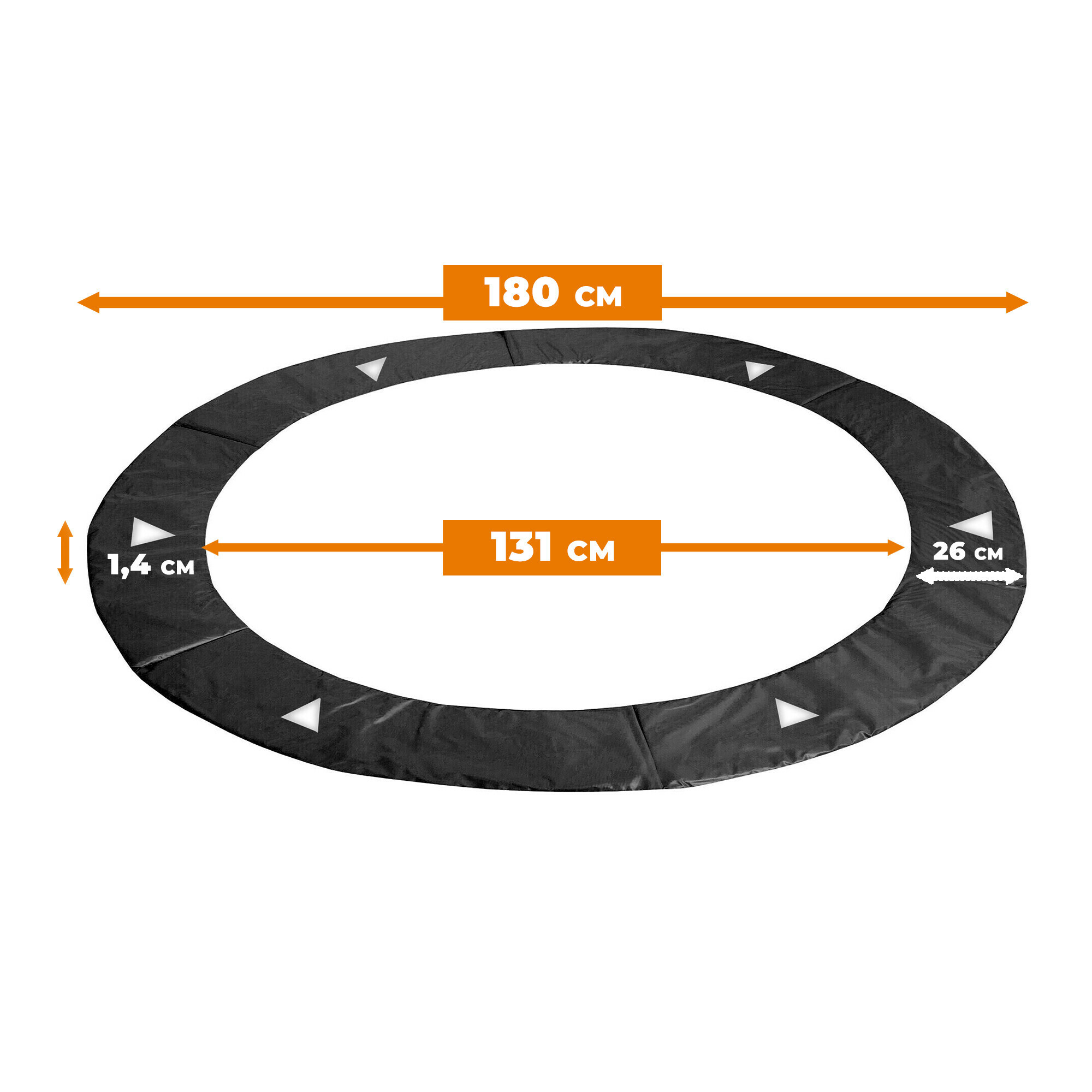 Specifikace krytu pružin AGA na trampolínu s vnitřní síti 180 cm (6 ft).