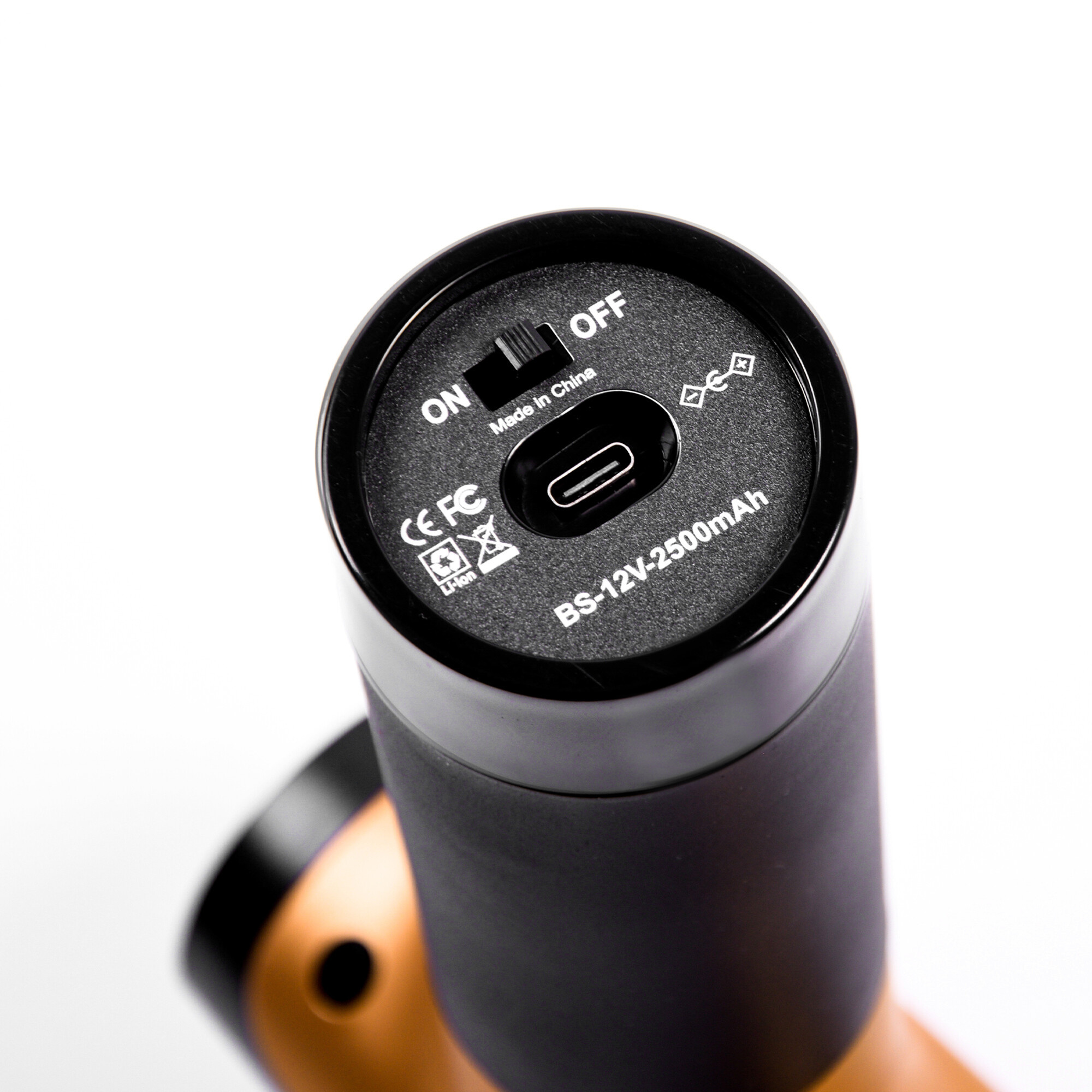 Masážní pistole má zabudovanou Lithium-iontovou baterii o kapacitě 2500mAh, která vydrží na jedno nabití až 3 hodin, podle používaného rychlostního stupně.