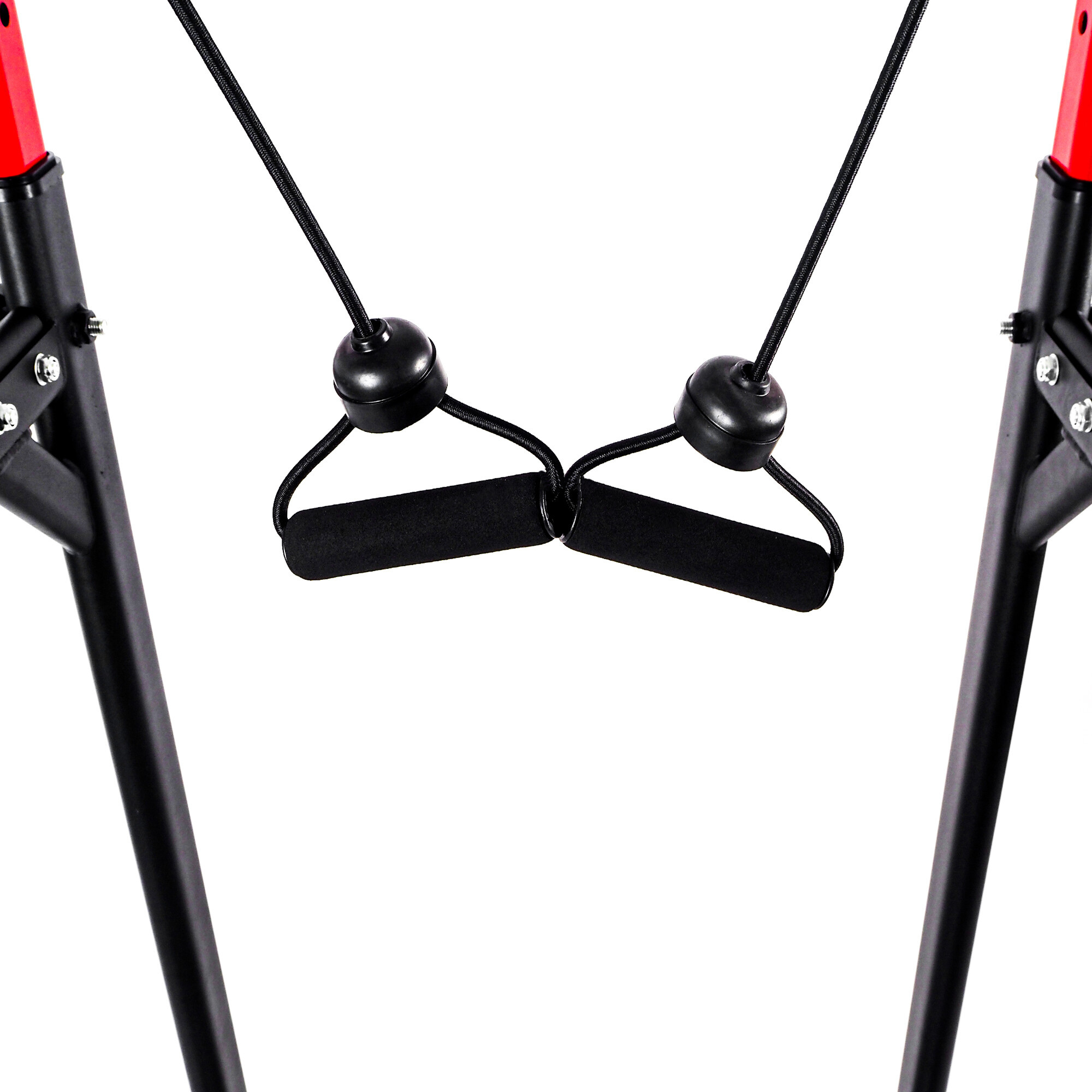Disponuje horní hrazdou s protiskluzovým pogumovaným povrchem, na které si pomocí přítahů a dalších cviků procvičíte svaly zad, břicha a paží.