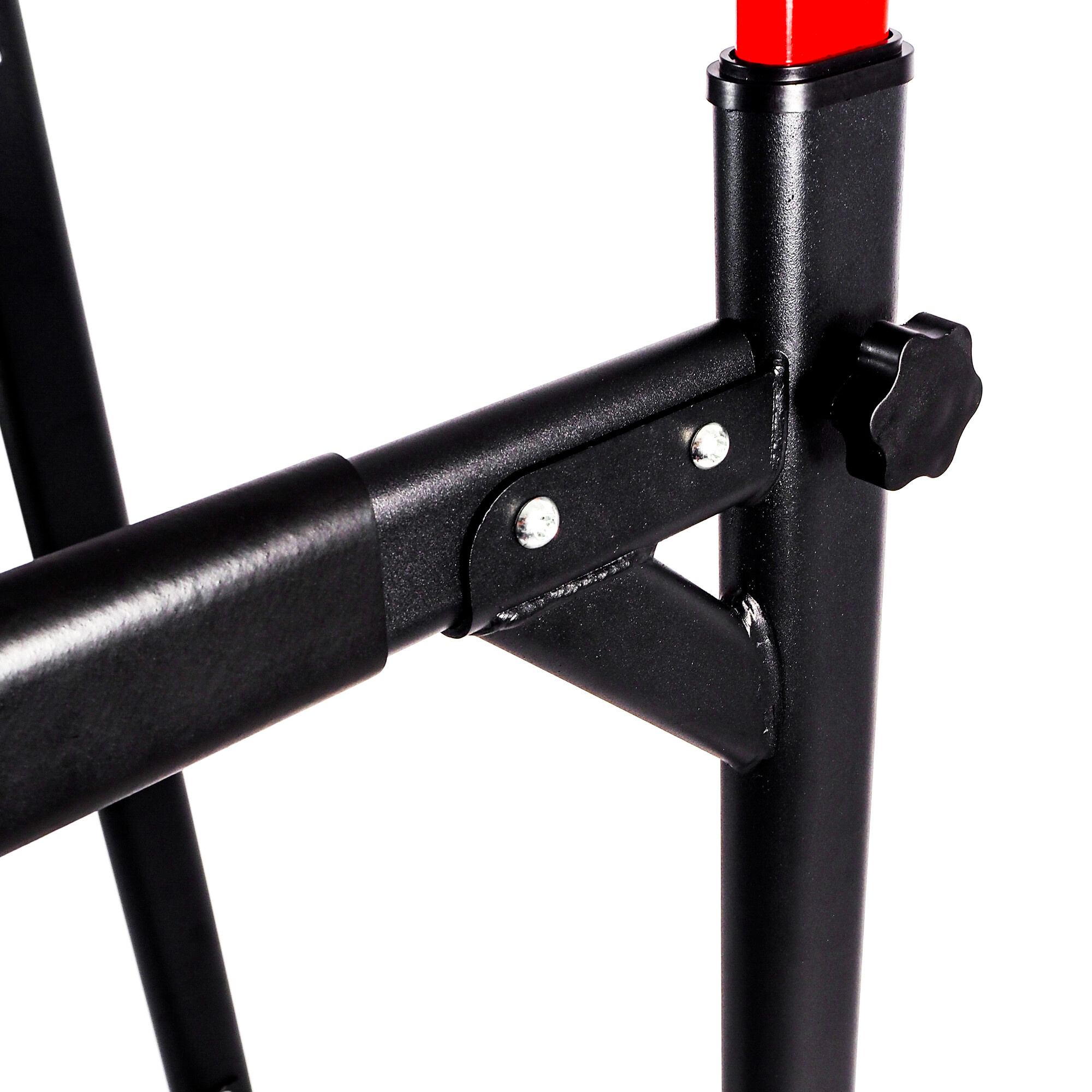 Výšku multifunkční hrazdy si můžete pohodlně přizpůsobit své výšce nebo tréninkovým preferencím v rozmezí 174-221 cm. Úpravy můžete provést rychle pomocí regulačních šroubů umístěných na rámu zařízení.