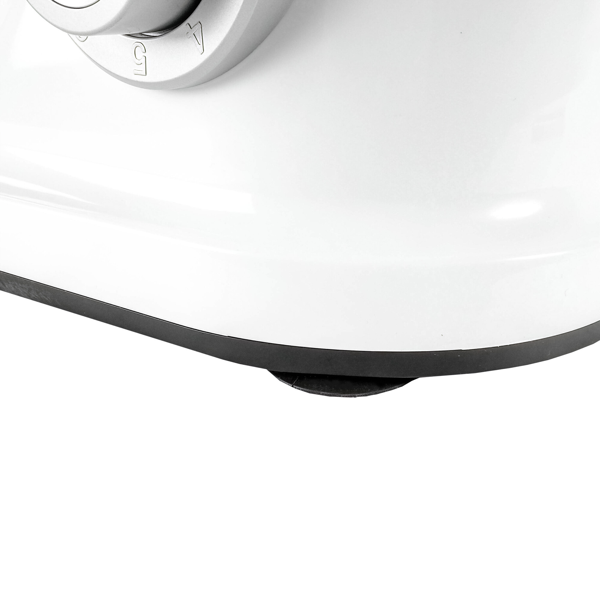 Kuchyňský robot je vybaven výkyvným ramenem, které usnadňuje přístup k míse a výměnu nástavců. Díky ochraně proti stříkání s otvorem na doplňování můžete přidávat ingredience i během míchání, aniž byste se museli obávat nepořádku. Přísavky na spodní straně robota zajišťují, že zařízení bude stát pevně na svém místě, a to i při nejvyšších rychlostech.